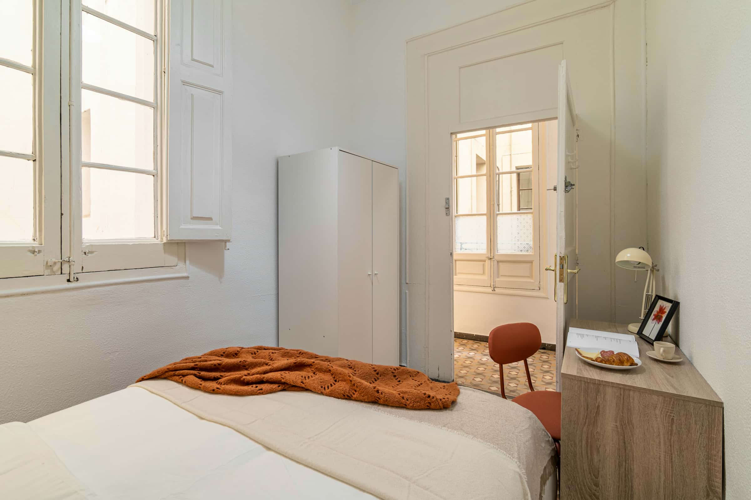 Habitación individual disponible en Barcelona La habitación tiene una superficie de 10.0 metros cuadrados El apartamento está amueblado y cuenta con los siguientes comodidades: Escritorio, Armario Los servicios incluidos en el precio del alquiler son: - tarifa de Internet