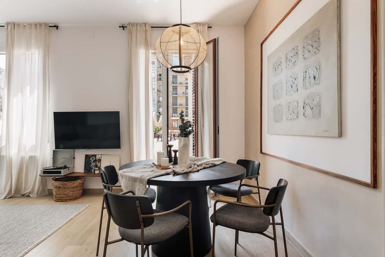 EN Our mission is to empower individuals to immerse themselves in new places by having a home wherever they go. We do this by providing artfully designed fully furnished and serviced apartments for stays of one month or more. We are currently present in some of the most important cities in Europe. Spectacular apartment in Rocafort street, with 3 bedrooms and 2 bathrooms. The kitchen is equipped with state-of-the-art appliances and kitchenware. The beds are equipped with soft bedding, ideal for a good night's rest. The apartment has 2 bathrooms equipped with a full shower and towels. In addition, the apartment is equipped with high-speed WiFi and SmartTV. The apartment has a washing machine, dishwasher and air conditioning for your maximum comfort. *For comfort, this apartment comes equipped with air conditioning in the living room and bedrooms. *We welcome pets, fees are subject to apply. Guests will be informed of any additional charges in the final contract. *We cannot be held liable for any noises (construction, or street noise) done outside the apartment. We also cannot be liable for any rooms without air conditioning (all the rooms with air conditioner will be explicitly explained in our description). We will not accept any reservation cancellations or refund requests related to these two issues. *Our in-house design team expertly selects all apartment furniture and decor to ensure the highest level of quality and comfort. As part of consistent home upkeep, design improvements, and photo staging, there may be minor differences in furnishings seen in the photos and what you find in the apartment. Inquire with a sales agent for any questions or doubts. *This accommodation may only be used for stays longer than 31 nights for personal purposes such as holiday, recreational, or leisure. The information provided may be submitted to the relevant registry and/or administrative authority in accordance with Catalan regulations. NRA ESFCNT00000806700116597000000000000000000000000000009