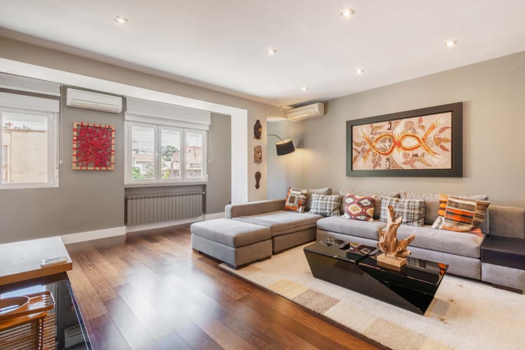ES MintyStay te ofrece este apartamento de estilo Reformado, totalmente amueblado y equipado en el barrio de Bernabéu. Este lujuso inmueble es ideal para viajeros corporativos, expatriados y alquiler por meses, dispone de 110m2 de superficie . El espacio se divide en: - 2 habitaciones - 2 baños El edificio cuenta con portero automático y ascensor. El inmueble es idóneo para 2 personas, sin embargo, tiene una capacidad máxima de hasta 4. El dormitorio principal tiene cama doble y el baño es independiente. La vivienda posee una cocina abierta y completamente equipada con electrodomésticos (frigorífico, microondas, lavavajillas y vitroceramica) y el menaje necesario para cocinar y disfrutar. El apartamento dispone también de: mesa de escritorio, cafetera italiana, tostadora, kettle, secador, plancha. Además, el inmueble cuenta con lavadora y secadora El comedor se encuentra situado en el salón lo que dota a la vivienda de dos espacios diferentes en la misma habitación. El salón dispone de sofá de dos plazas, y TV. La calefacción está instalada con un sistema Gas- Caldera comunitaria, mientras que el aire acondicionado funciona split. La conexión a internet WiFi también está instalada, contará con todo lo necesario para sentirse tan cómodo como en su propio hogar. Los gastos de suministros: WiFi, agua, luz y calefacción, están incluidos en el precio de la vivienda hasta un máximo de 150€/mes. Minty Host se encargará de la gestión y asistencia durante su estancia en este apartamento dotado de servicios. Bajo consulta, sus servicios ofertados incluyen: limpieza habitual, reposición de ropa de cama y toallas, lavandería, búsqueda de plaza de aparcamiento en las proximidades y servicio de transfer desde/al aeropuerto o estación de tren. Por último, en Minty Host nos tomamos muy en serio la seguridad y tranquilidad de nuestros huéspedes y colaboradores. Esta vivienda cuenta con garantía de desinfección según el protocolo oficial de limpieza y desinfección de alojamientos relativo al Covid-19, y en ella empleamos productos de limpieza homologados, garantizando un espacio completamente seguro. El apartamento, cuya estación de metro más cercana es Nuevos ministerios, se encuentra perfectamente comunicado con la zona de negocio de la ciudad. --- Barrio: Exclusiva zona del distrito de Chamartín, de calles amplias y llena de vida. A escasos metros de una de las principales arterias de la ciudad, el paseo de la Castellana. También se está la zona financiera de la ciudad. Luego al norte tenemos ACZA y plaza de Castilla Además, este barrio es conocido popularmente por el Santiago Bernabéu el campo de fútbol del Real Madrid CF. Es posible visitar el interior y su sala de trofeos a diario (no se realiza en días de partido) en el tour ofrecido por el club. Por último, en las cercanías de la vivienda hay todo tipo de comercios y servicios como supermercados o farmacias. --- EN MintyStay offers you this refurbished apartment, fully furnished and equipped in Bernabéu neighborhood. This luxury apartment ideal for corporate travelers, expats, and monthly rentals, has a 110sqm surface . The space is divide in: - 2 bedrooms - 2 bathrooms The building has intercom and an elevator. The flat is ideal for 2 people, nevertheless, this MintyStay apartment can host up to 4 guests. Main bedroom has a double bed & an in suite bathroom. The house has an open kitchen, which is fully equipped with every needed home appliances (fridge, microwave, dishwasher, stove), cookware and kitchen utensils for cooking and, most important, enjoying doing it. The flat also has: working desk, nesspreso coffee maker, toaster, kettle, hair dryer and iron. Furthermore, you will also find a washing machine and dryer . You also will have a space which can be used as dining rooms or living room, with all necessary material to feel just like at home. The living room has a couch and TV . There is a Gas- Common heating heating system installed to make sure you never get cold in winter days. As for the summer, you will have a split AC equipment . WiFi connection is also installed. We make sure everything is well prepared for a perfect stay. Regarding toiletries, and as per hotel industry standards, you will find soap, gel & shampoo for you first stayover night. Supply expenses, WiFi, water, electricity & heating, are covered by your accommodation as long as it does not exceed 150€/month. Minty Host will take care of the management and assist you during your stay in this serviced apartment. We offer many services upon request, such as regular cleaning (including) replacement of bed linen and towels, laundry, search for a parking space nearby and transfer service from/to the airport. Last but not least, at Minty Host we take the safety and ease of our guests and collaborators very seriously. This house has a guarantee of disinfection according to the official protocol for cleaning and sterilization of accommodations related to the Covid-19. We use approved cleaning products and disinfection materials, guaranteeing a completely safe space. Neighborhood: Exclusive area of the Chamartín district, with wide streets and full of life. It is the perfect location for a business trip, as you will be located a few blocks away from AZCA business area and very well connected to the northern business areas (Plaza Castilla and New Towers). The property is very close to Paseo de la Castellana, Madrid´s main avenue that crosses the city from north to south. Santiago Bernabeu is the main tourist attraction of the neighborhood, also at walking distance. If you are not able to watch a Real Madrid CF's match, you may be interested in visiting the stadium´s museum. Orense street is the main commercial area to go shopping, and for your daily needs, you will not have trouble finding groceries stores and pharmacies close to the apartment.