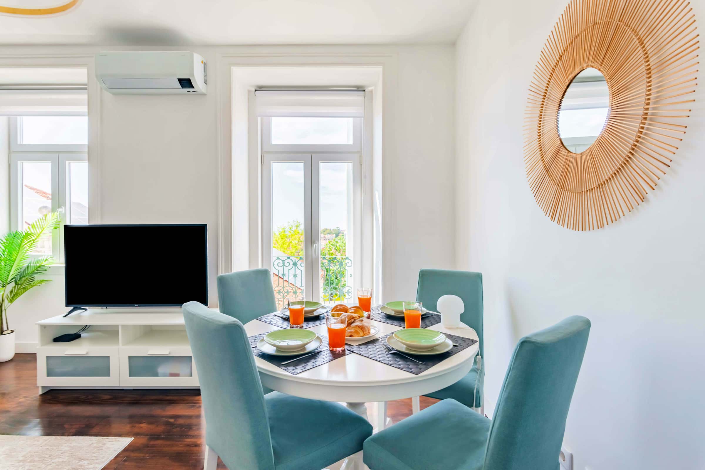 A charming, recently renovated apartment nestled in the vibrant and cosmopolitan neighborhood of Saldanha. With a modern and relaxing ambiance, it boasts two comfortable bedrooms, an office, a cozy living room, and a fully equipped kitchen, making it the perfect retreat to experience authentic Lisbon. Feel at home as you explore everything this captivating city has to offer! → Building The apartment, recently renovated, is located on the second floor of a building without an elevator, but with a beautiful solid wooden staircase. Centrally located in Saldanha, a neighborhood bustling with commercial activity, featuring numerous shops, restaurants, cafes, and businesses. A dynamic neighborhood with a mix of residential, commercial, and cultural amenities, making it a popular and lively area to live in! → Rooms The apartment has 2 bedrooms. One with a double bed, large bay windows that flood the space with light, and the other with a single bed (convertible into a double bed) that also has a desk. Both equipped with air conditioning, ensuring your comfort throughout the year! → Bathroom: The apartment has two modern bathrooms with shower. → Living room The living room, bright and cozy, has a comfortable sofa, TV and air conditioning, providing the ideal environment to relax and enjoy the company of friends and family. Additionally, it has a dining table for 4 people to share delicious meals. → Office An office equipped with a comfortable desk and AC. Also equipped with a mirror and wardrobe, you can convert this space into a dressing room! → Kitchen In the kitchen you will find all the amenities you need to prepare your meals, including a fridge, coffee machine (coffee not included), induction hob, electric oven, microwave and electric kettle. Additional Information: → The property is Self-Catered. Complimentary basic items are provided for your arrival, including first-day toiletries, toilet paper, etc. These items are offered on a welcome basis only - replacements or re-fills are not provided. → Bed and bath linen are provided according to the number of guests confirmed in the reservation. → The Cleaning Fee included in your reservation covers the check-out cleaning only. Extra cleanings or fresh linens can be requested during your stay and are subject to an extra fee - these requests must be done with at least 24 hours in advance. → Check-in time starts at 16:00 and check-out must be done until 11:00(am). Before leaving, please place the keys inside the lockbox. → During the stay, the guest is responsible for the safekeeping and proper use of the property's keys. Please avoid leaving them in the lock or mailbox. In the event that a specialized technician is needed for door opening or in case of damage to the key and/or lock, the costs associated with this service will be the responsibility of the guest. In case of key loss, a penalty will be applied. → Crib and baby chair are available upon request and subject to an extra fee. → The property is equipped with noise decibel monitoring sensors. This system performs advanced analysis while ensuring the privacy of our guests, as no cameras are used, and no sound is recorded. Only noise levels are measured, thus guaranteeing the tranquility and comfort of everyone during their stay. → Monthly consumptions are included up to €150. → City Tax will be charged according to the law. This Tax will only be applied for the first 7 nights. → Please keep in mind that the complete passport/ID details of all guests are required by Portuguese authorities. If you are a Portuguese citizen or booking on behalf of a registered company, providing a tax identification number is also mandatory. Please contact us for more information.