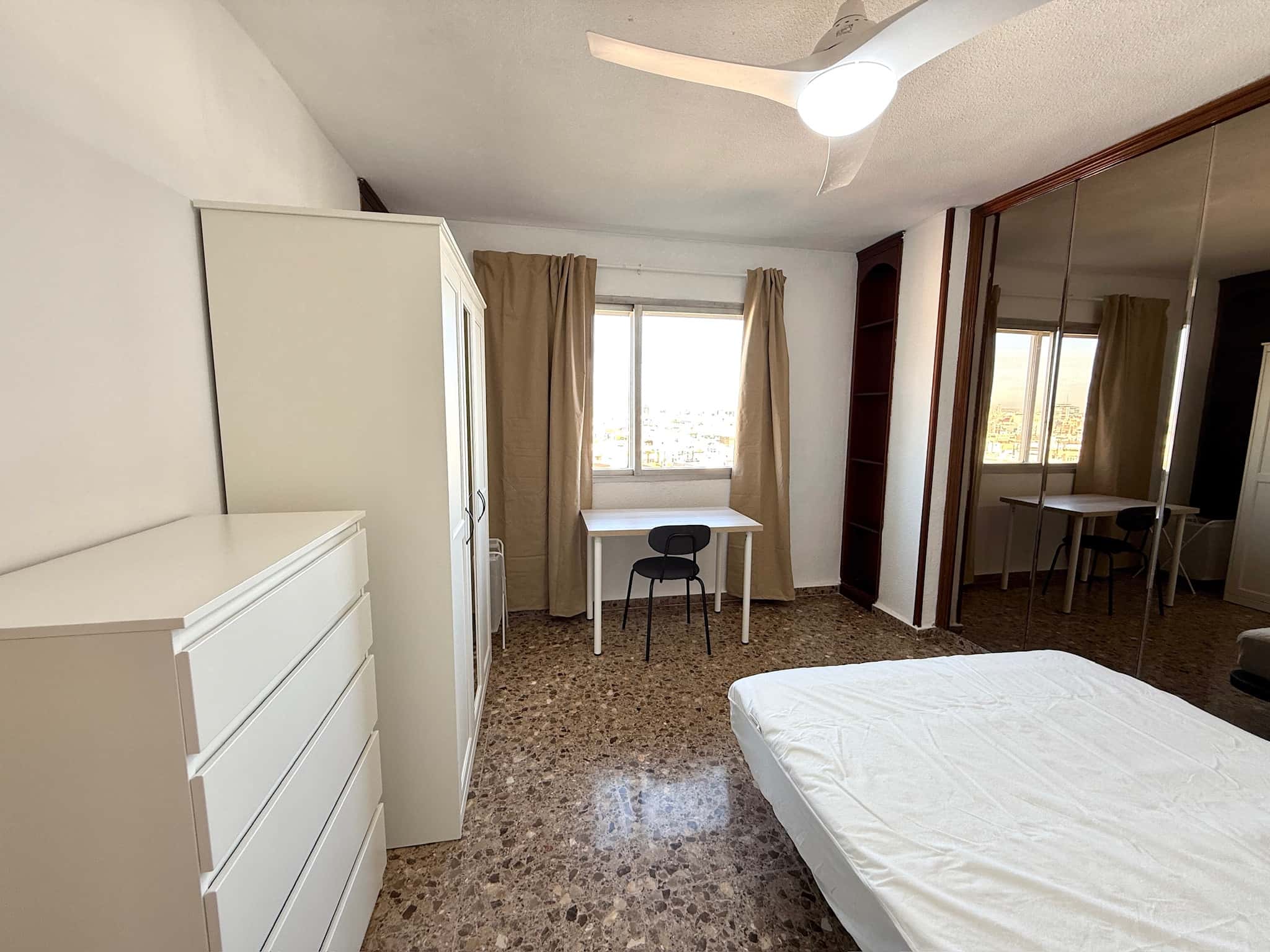 ONLY FOR WOMEN Spacious and bright, featuring a 135x190 bed, desk, ceiling fan, mirrored wardrobe, dresser, two built-in shelves, and a glass door closet. Fortnightly cleaning of common areas included. Fully equipped for an individual stay. 📜Please note that the bills are included up to 30€.