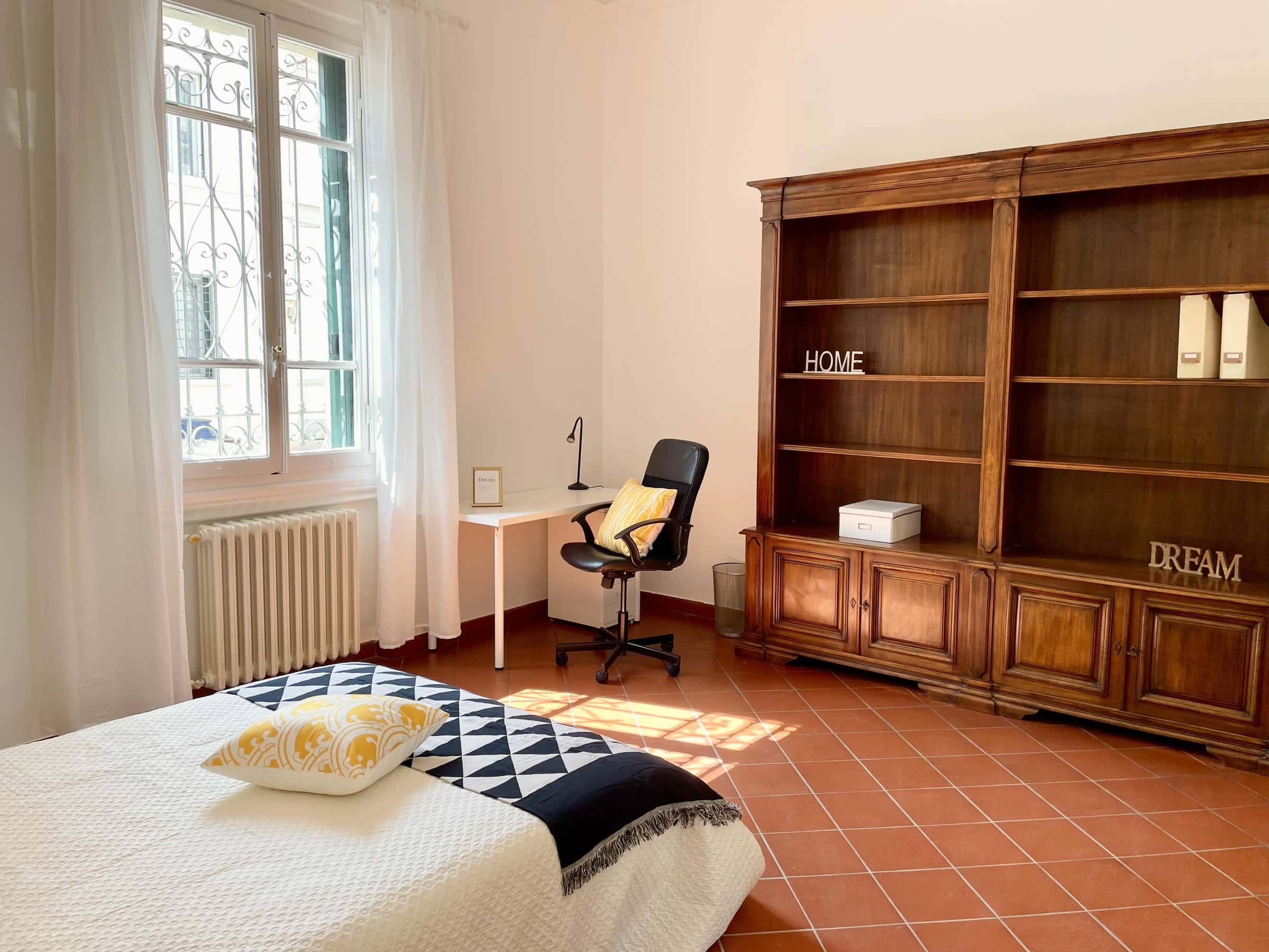 [ITA] Zona Novoli, posizione strategica e ambita, si affitta una bellissima suite Stanza Semplice ristrutturata appositamente per offrire comfort e comodità ai nostri studenti. La stanza è dotata di wi-fi, letto una piazza e mezza, armadio 3 ante, scrivania con portaoggetti, comodino, tendaggi, specchio, grande libreria. Aria condizionata. Bagno condiviso con un solo coinquilino. Situato in terratetto indipendente, su 2 piani (terra e primo), luminoso e molto spazioso. 120 mq di superficie. È composto da cucina abitabile, 3 Bagni e 5 stanze singole. L'appartamento è ottimamente ristrutturato in funzione di tutto ciò che occorre ai nostri studenti. Dotato di WI-FI, lavatrice, cucina equipaggiata.