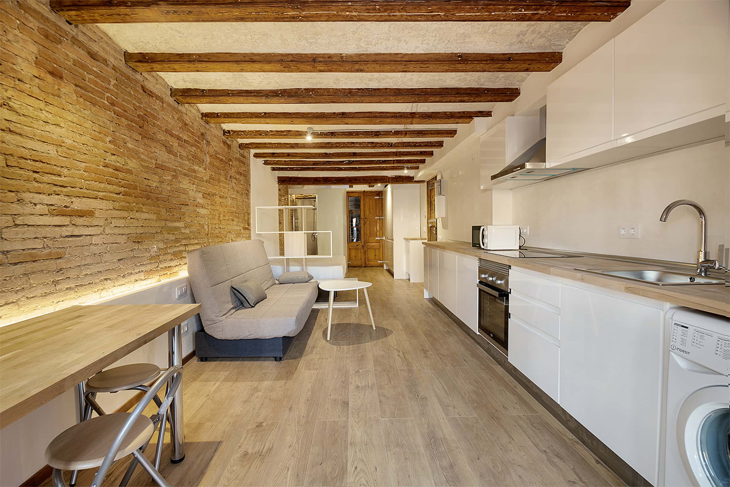 Cozy studio in central location.-Seasonal rental agreement 2-11 months. This cozy 39m2 studio in the heart of Barcelona has a double bed, a comfortable kitchen, a dining area, and a bathroom. Ideal for couples or a single person, the studio is fully equipped and ready to move in. It is located on the first floor. The property is in a very quiet and excellent location. Very centric, next to paral-lel metro station, this allows easy access to the city's different points and public transport, restaurants, and shops. Rental conditions: -Monthly rent: 940€ /month. -Deposit: 1,5 months’ rent. -Utilities: 150€/month -Internet: to be hired by the tenant -Agency fees: A single payment equivalent to one month's rent + 21% VAT. -Cleaning expenses: a single payment of 100€ (VAT included). -Contract preparation: a single payment of 100€ (VAT included). After the reservation is confirmed, you will receive a separate email with the next steps to complete the booking process and organize the check in with the agency. Check ins are possible during the week from Monday to Friday from 09:30am until 17:30pm or after office hours for an extra fee of 85€ + 21% VAT. SEASONAL RENTAL FOR LEISURE OR HOLIDAY PURPOSES ONLY – MIN. 32 DAYS MAX. 11 MONTHS We only accept reservations from tenants staying for leisure or holiday purposes. This apartment is exclusively available for temporary stays related to leisure, holidays, recreational or cultural activities such as congresses, fairs or festivals, as well as short-term work or study stays. The minimum stay is 32 days and the maximum is 11 months. You will need to provide ID/passport, proof of solvency (contract, payslips, bank statement), and sign a document with the owner declaring that you are staying for leisure and tourism purposes.