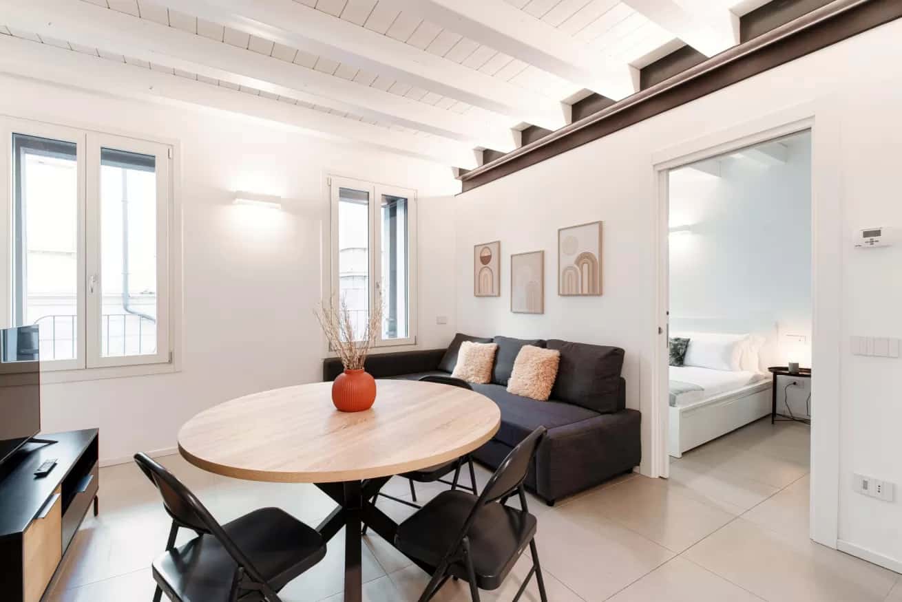 Nel cuore di Como, a pochi passi dalla stazione dei treni “Como Lago” e dei bus “Stazione Lago” in Piazza Sant’Agostino, “COMO LAGO” APARTMENT è perfetto per chi desidera esplorare la città, con le sue affascinanti vie lastricate e il meraviglioso lungolago. L’appartamento si trova all’interno di un edificio storico recentemente ristrutturato con materiali e finiture di alta qualità. L'ampia zona giorno, dal design minimalista, unisce estetica e funzionalità grazie ad arredi semplici e moderni, dalle linee pulite e sui toni del grigio. Il soggiorno, luminoso e accogliente, si integra perfettamente con la cucina open space, attrezzata con tutto il necessario per soddisfare ogni esigenza ai fornelli. L’intero ambiente è arricchito da soffitti bianchi con travi a vista, che creano un'atmosfera intima e rilassante, ideale per ricaricarsi dopo una giornata alla scoperta del centro storico e del lago. La camera matrimoniale, spaziosa e arredata con gusto, offre un ambiente rilassante e ben organizzato, dotato di un pratico appendiabiti per riporre comodamente indumenti e bagagli. Il bagno è completo di tutti i comfort, tra cui doccia, lavatrice e asciugatrice, per garantire il massimo della praticità. Viene fornita biancheria da letto di qualità, asciugamani e kit di cortesia. Lasciamo anche un cestino regalo con il necessario per la vostra prima colazione. L’appartamento non dispone di un parcheggio privato. È vietato fumare. È vietata ogni attività commerciale all’interno dell’appartamento. Nei dintorni: La posizione di COMO LAGO APARTMENT consente di visitare comodamente a piedi l’intero centro città. In soli 2 minuti si raggiunge Piazza Cavour, la piazza più grande di Como, dove si trova il punto d'imbarco per i battelli della Navigazione Lago di Como, con cui raggiungere le più celebri località del lago (Cernobbio, Blevio, Torno, Laglio, Argegno, Menaggio, Bellagio, Varenna). In 5 minuti si raggiungono anche piazza Duomo e il suo Broletto, e le vie dello shopping, come via Vittorio Emanuele. Le altre piazze principali si trovano a circa 10 minuti a piedi, come Piazza San Fedele e Piazza Volta; quest’ultima, vivace punto di ritrovo serale, con i suoi numerosi bistrot, ristoranti e bar. Sempre a piedi, o noleggiando le city bike, si possono raggiungere Villa Olmo e il suo parco, attraverso la pittoresca passeggiata che parte dall’Hangar, o Villa Geno, percorrendo il lungolago di Viale Geno. A pochi passi dall’appartamento si trovano anche la stazione della funicolare, che conduce alla panoramica Brunate, e la stazione dei treni Como Nord Lago, che offre numerosi collegamenti con diverse località lombarde, come Milano e Monza. "COMO LAGO" APARTMENT - Apartment Close to the lake and the station In the heart of Como, just a few steps from the "Como Lago" train station and the "Stazione Lago" bus stop in Piazza Sant’Agostino, Como Lago Apartment is perfect for those who wish to explore the city, with its charming cobbled streets and beautiful lakeside promenade. The apartment is located in a historic building that has been recently renovated with high-quality materials and finishes. The spacious living area, designed with a minimalist style, combines aesthetics and functionality with simple, modern furniture in clean lines and shades of gray. The bright and welcoming living room seamlessly connects with the open-plan kitchen, which is fully equipped to meet all your cooking needs. The entire space is enhanced by white ceilings with exposed wooden beams, creating an intimate and relaxing atmosphere—ideal for unwinding after a day of exploring the old town and the lake. The large and elegantly furnished double bedroom offers a peaceful and well-organized space, complete with a practical clothes rack to conveniently store garments and luggage. The bathroom is fully equipped with all modern comforts, including a shower, washing machine, and dryer, ensuring maximum convenience. Quality bedding, towels and a courtesy kit are provided. We also leave a gift basket with some necessary items for your first breakfast. The apartment does not have a private parking space. Any commercial business is forbidden inside the apartment. Guests have the access of the whole apartment. Nearby: The location of COMO LAGO APARTMENT allows you to explore the entire city center on foot. In just 2 minutes, you can reach Piazza Cavour, Como’s largest square, where you will find the boat dock for Navigazione Lago di Como ferries, which take you to the lake’s most famous destinations (Cernobbio, Blevio, Torno, Laglio, Argegno, Menaggio, Bellagio, Varenna). A 5-minute walk will take you to Piazza Duomo and its Broletto, as well as the main shopping streets such as Via Vittorio Emanuele. Other key squares, such as Piazza San Fedele and Piazza Volta—a lively evening hotspot with many bistros, restaurants, and bars—are around 10 minutes away on foot. You can also reach Villa Olmo and its park by renting a city bike or taking a scenic walk starting from the Hangar. Alternatively, you can stroll along Viale Geno to visit Villa Geno. Just a few steps from the apartment, you will also find the funicular station to Brunate, offering panoramic views, as well as the Como Nord Lago train station, which provides numerous connections to various Lombard destinations, including Milan and Monza.