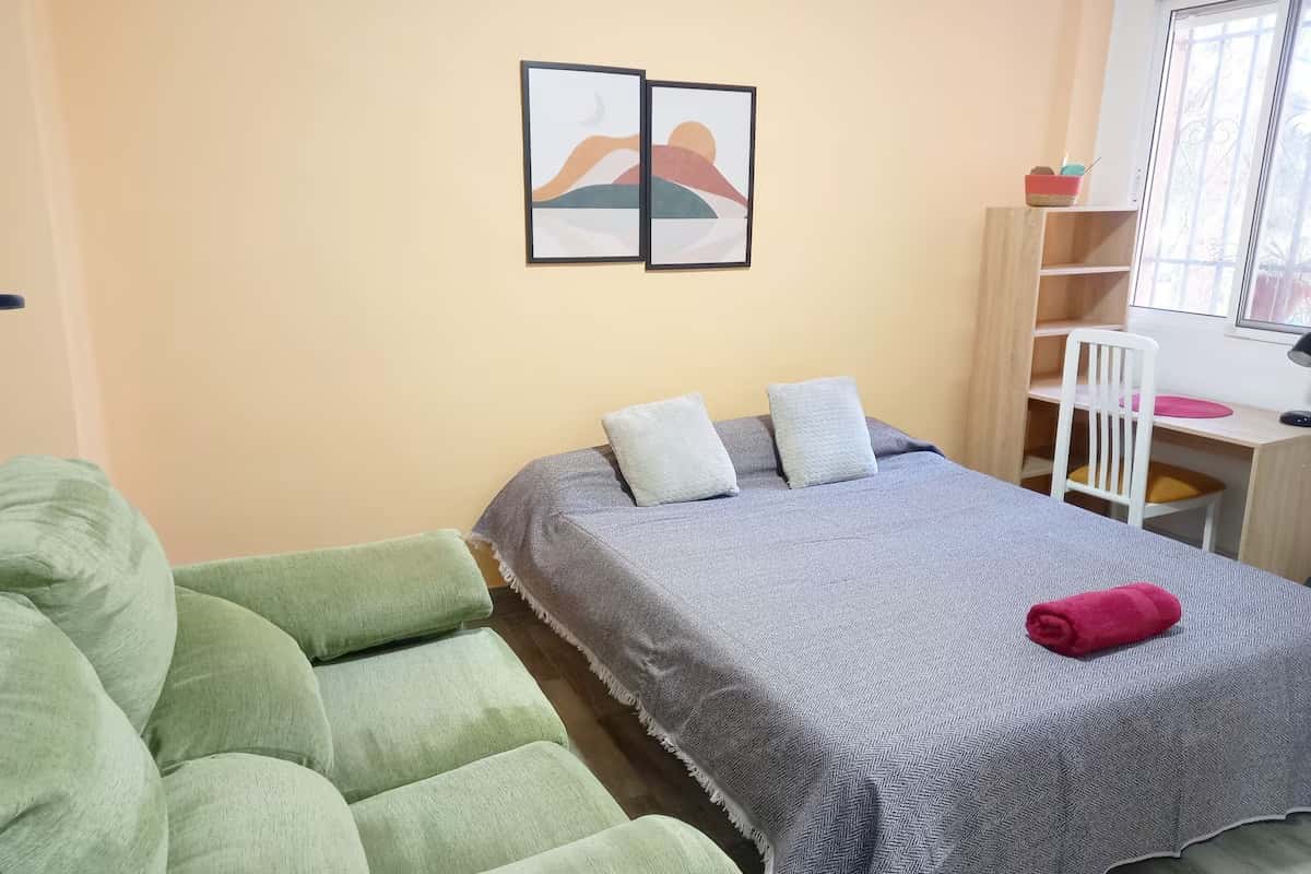 Ven a disfrutar de Valencia!! Alquiler temporal de mínimo 11 días (Mid Term rent). Cómoda habitación doble en el animado barrio de Ayora. Perfecta para estudiantes, profesionales y viajeros. Cuenta con una cómoda cama de 150x190, armario y WiFi de alta velocidad. Disfruta de comodidad y maravillosa ubicación en uno de los barrios más emocionantes de Valencia. Esperamos verte pronto en tu nuevo hogar en el corazón de la ciudad! El espacio Excepcional ubicación: a 30 minutos a pie de la increíble playa de la Malvarros. Cerca de las universidades, el centro de la ciudad y rodeado de vida nocturna, cultural y gastronómica. Servicios y zonas comunes Disfruta de las zonas comunes del piso; living comedor, patio y cocina. Servicios y zonas comunes Podrás disfrutar en los espacios comunes de la casa, living comedor, balcón y cocina. Otros aspectos destacables Tendrás un espacio asignado tanto en la nevera como en el armario de la cocina para que guardes tu comida. Podrás disfrutar de los espacios compartidos con otros huéspedes. Datos del registro España - Número de registro nacional ESHFNT00004605400030950400100000000000000000000000007