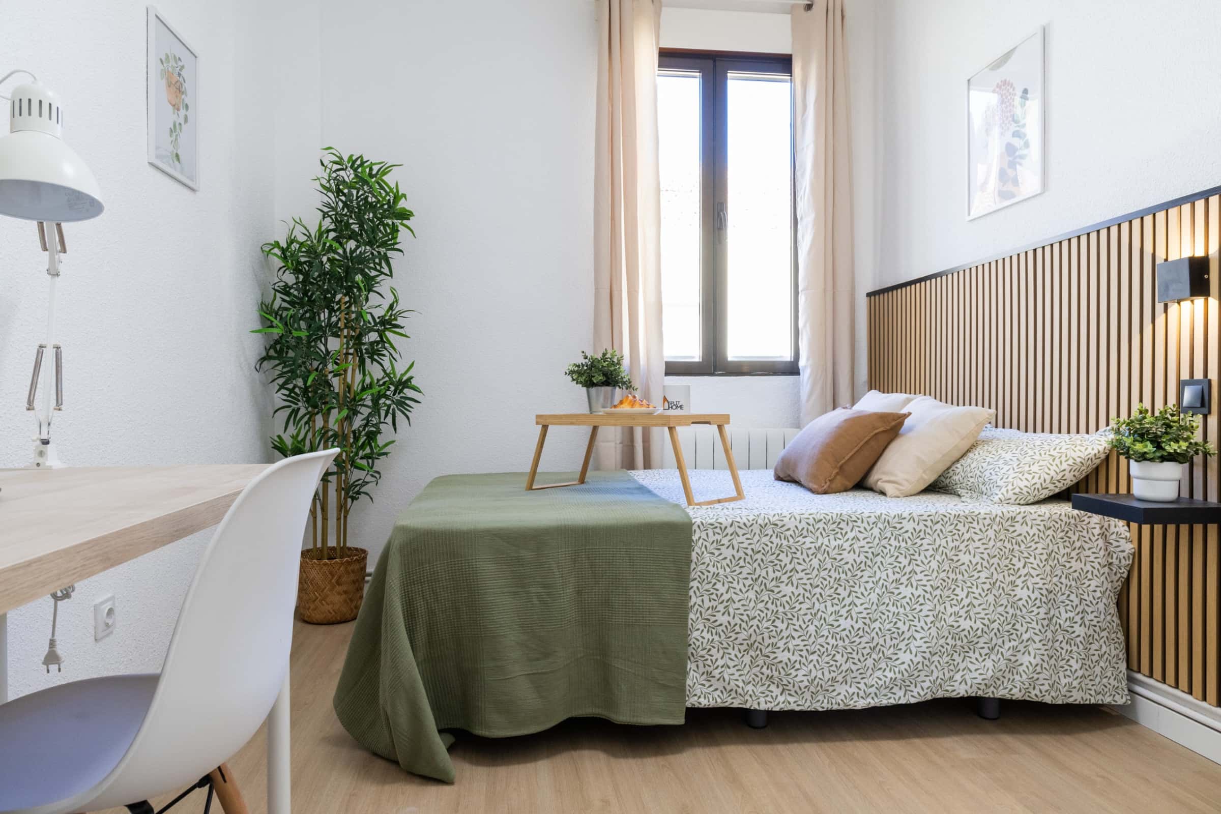 Habitacion privada en Getafe. En pleno centro a 100m de la Renfe de Getafe Central, la ubicacion es de las mejores de la ciudad. Acceso comodo a todos lados. El ambiente del apartamento es tranquilo, para descansar y estudiar con todas las comodidades. El apartamento cuenta con 5 habitaciones y 1 baño. Ubicado en el 2º piso, con ascensor. No se permiten mascotas ni fiestas. Se debe abonar ademas un deposito y costo de contrato obligatorio Importante: las imagenes de las habitaciones son de la tipologia de la habitacion real.