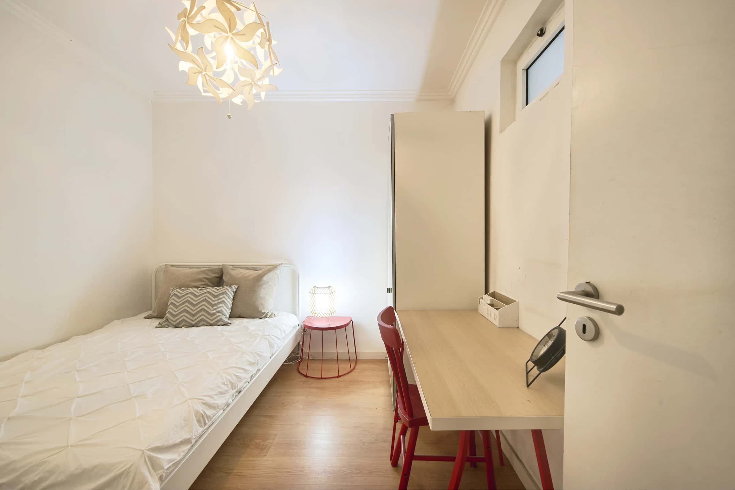 EN Situated on the third floor, this bright and cozy apartment in Alameda is the perfect place to live! Located in one of Lisbon’s most vibrant and well-connected areas, you’ll be surrounded by cafés, restaurants, supermarkets, and all essential services. The neighborhood offers excellent public transport connections, with the Alameda metro station and several bus stops just a few minutes away, giving you easy access to every part of the city.The apartment features a well-equipped kitchen, the shared areas are comfortable and welcoming, creating a pleasant environment for everyone.With 4 bedrooms and 1 bathroom, this apartment combines comfort, functionality, and an exceptional location, making it the ideal choice for students and young professionals looking to live conveniently in the heart of Lisbon. Alameda is one of Lisbon’s most vibrant and well-connected neighbourhoods, popular among students and young professionals. Centered around the beautiful Alameda Dom Afonso Henriques park, the area combines a relaxed atmosphere with urban convenience. You’ll find cafés, restaurants, supermarkets, and local shops on every corner, as well as excellent public transport links — including the Alameda metro station, which connects you quickly to the rest of the city. Metro: The Alameda metro station serves both the Green Line (Linha Verde) and the Red Line (Linha Vermelha) — giving you direct access to major points like the city center (Baixa/Chiado), the airport, and Parque das Nações.Buses: Several Carris bus lines stop around Alameda, including 708, 718, 720, 735, 742, 756, and 767, connecting you easily to areas like Cais do Sodré, Oriente, and Campo Grande.Trams: While Alameda itself doesn’t have a tram stop, you’re just a short walk from Avenida Almirante Reis, where classic Lisbon trams such as the 28E pass through — perfect for exploring the city’s historic neighborhoods.In short, whether you study, work, or just love to explore, Alameda makes it easy to get anywhere in Lisbon quickly. - Alameda Dom Afonso Henriques Park – The heart of the neighborhood, this large green space is perfect for relaxing, studying outdoors, or enjoying a picnic with friends. It features fountains, shady trees, and a lively atmosphere, especially on sunny days.- Instituto Superior Técnico (IST) – One of Portugal’s top universities, IST gives the area a vibrant student energy, with cafés, study spots, and affordable restaurants nearby.- Avenida Almirante Reis – A bustling avenue filled with local bakeries, international eateries, and vintage shops — ideal for grabbing a pastel de nata or exploring Lisbon’s diverse food scene.- Igreja de São João de Deus – A beautiful modernist church located right next to Alameda Park, known for its striking architecture.- Fonte Luminosa & Surroundings – The “Luminous Fountain” at the top of Alameda Park is a local landmark, especially stunning when illuminated at night, and often surrounded by small local markets and events.From peaceful green areas to lively cafés and great connections to Lisbon’s center, Alameda offers the perfect mix of convenience, charm, and everyday comfort. - No smoking.- No pets allowed.- No parties.- Trash must be taken out daily.- Short-term visitors are allowed (2 days). Longer period: €20 per day.- Utilities: included up to €25 per tenant.- Cleaning: offered by the landlord.- Bedding: pillows, duvet, and bed sheets are not provided.- Payment before check-in: first and last month, deposit and admin fee.- Check-ins: from Monday to Saturday from 4pm until 7:30pm. No check-ins on Sundays and bank holidays. Check-in is authorized only 24h after the payment is confirmed in our bank account and the contract is signed. The bedroom is a cozy and comfortable space, designed to offer residents a peaceful and restful environment. The room features a cozy single bed, a desk, a chair, and storage space for your belongings