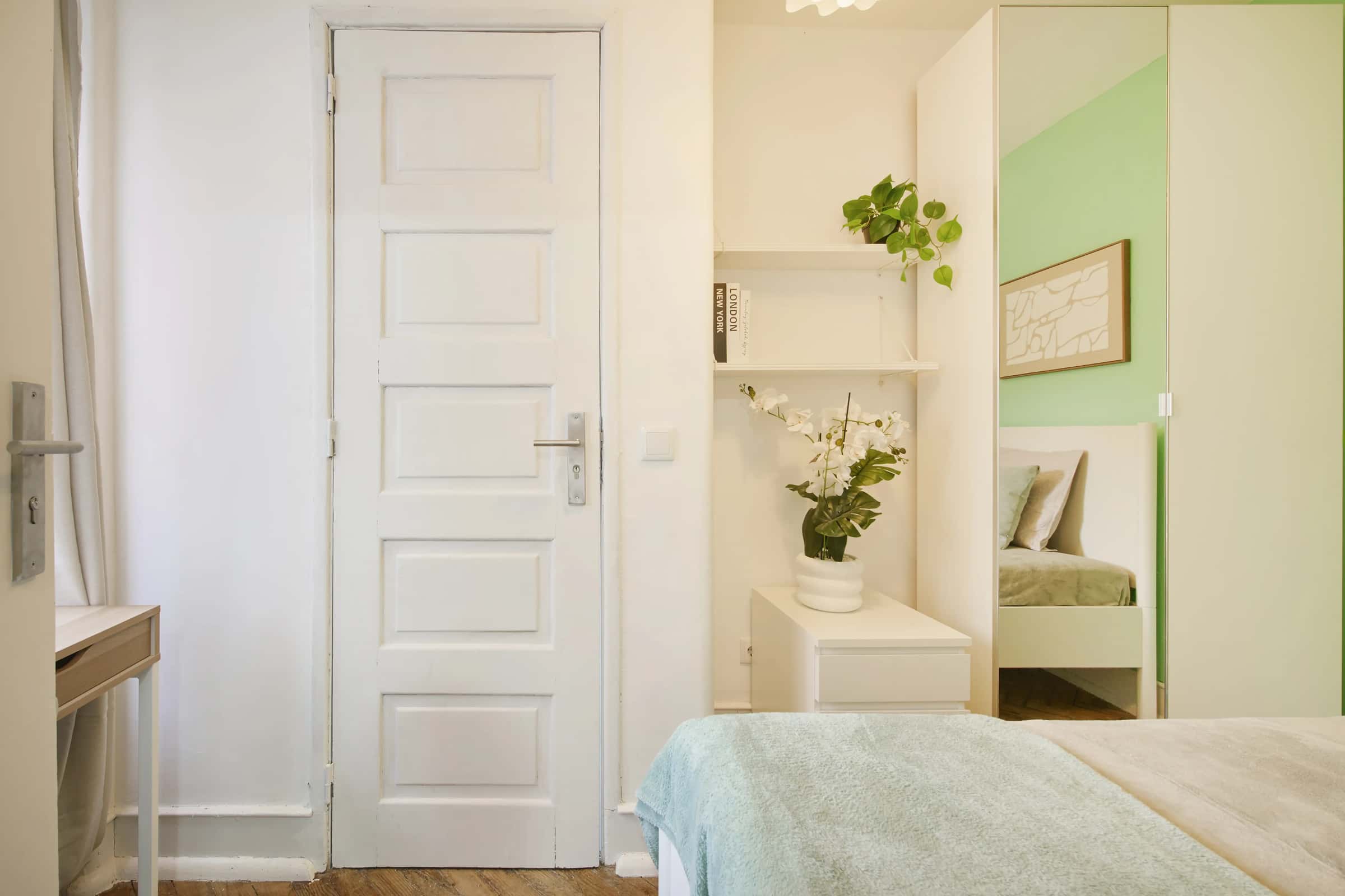 EN This comfortable 6-bedroom apartment in Avenida de Roma offers a perfect combination of space, convenience, and charm. Located on the first floor, the apartment features a fully equipped kitchen and two bathrooms (1 shared and 1 en-suite), designed to provide practicality and comfort for everyday living.With its welcoming atmosphere and excellent location, this apartment is ideal for those who value being close to everything cafés, restaurants, supermarkets, and essential services are all just a few minutes away on foot.The nearest supermarket is about 3 minutes away on foot, and the closest bus stop is approximately 2 minutes away, ensuring quick access to public transport and the rest of Lisbon. Avenida de Roma is one of the most iconic and vibrant areas of Alvalade, known for its tree-lined streets, local cafés, and classic Lisbon charm. The neighborhood offers an excellent mix of residential comfort and urban convenience, with shops, restaurants, and cultural spots all nearby.It’s a peaceful yet dynamic area, perfect for those who want to experience authentic Lisbon living with everything close at hand. Metro: Roma and Alvalade stations (Green Line) provide direct access to central Lisbon, including Baixa and Cais do Sodré.Trains: Roma-Areeiro train station is just a short walk away, connecting the area to suburban and regional destinations.Buses: Multiple Carris bus routes run through Avenida de Roma, ensuring easy connections to Saldanha, Campo Grande, and Marquês de Pombal.Thanks to its great transport links, moving around Lisbon from Avenida de Roma is fast and convenient. Avenida da Igreja – A lively nearby avenue filled with cafés, bakeries, and local shops.Mercado de Alvalade – A traditional market offering fresh produce and regional products.Jardim do Campo Grande – A large park perfect for walking, exercising, or relaxing outdoors.Centro Comercial Campo Pequeno – A shopping and entertainment hub nearby.Biblioteca Nacional de Portugal – The National Library, located just a few minutes away.Avenida de Roma offers the perfect mix of convenience, comfort, and Lisbon charm, making this cozy apartment a great choice for those who want to enjoy city life in a classic neighborhood. - No smoking.- No pets allowed.- No parties.- Trash must be taken out daily.- Short-term visitors are allowed (2 days). Longer period: €20 per day.- Utilities: included up to €25 per tenant.- Cleaning: offered by the landlord.- Bedding: pillows, duvet, and bed sheets are not provided.- Payment before check-in: first and last month, deposit and admin fee.- Check-ins: from Monday to Saturday from 4pm until 7:30pm. No check-ins on Sundays and bank holidays. Check-in is authorized only 24h after the payment is confirmed in our bank account and the contract is signed. The bedroom is a cozy and comfortable space, designed to offer residents a peaceful and restful environment. The room features a cozy double bed, a desk, a chair, and storage space for your belongings.