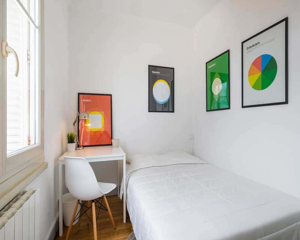 Inquilini all'interno della struttura / Tenants inside the building: 1) Male, Student, 33 2) Female, Worker, 35 EN This lovely private bedroom in a fully equipped, furnished and all-inclusive flatshare in Lyon is a mix of comfort and design. It has got household furnishings, including a bed with pillows and duvet What is missing is your things to feel at home! The room can be locked if you need intimacy. The flatshare can be found in the Manufacture neighborhood, in the heart of Lyon. Plenty of shops, public transports, restaurants are accessible close by. The apartment is on floor 7 with lift. It is entirely equipped and is composed of a large kitchen with refrigerator, microwave, pans, crockery, kitchen ustensils, kettle… The accommodation also contains an ironing board, a washing machine, a clothes rack, an iron. Additionally, you will find cleaning items in the accommodation: bagless hoover, dustpan and brush, broom, mop and bucket… Every furnished flatshare includes all expenses: housing insurance, water, electricity, unlimited wi-fi, condominium fees, household waste tax. FR Cette superbe chambre en colocation, meublée, équipée et tout inclus à Lyon unit confort et design. Elle offre de nombreux équipements comme un lit confortable et hypoallergénique avec couette et oreillers. Ne vous manque plus à apporter que vos vêtements pour y vivre ! La chambre possède un cadenas si besoin. Le logement est localisé dans le quartier Manufacture, en plein coeur de Lyon. De nombreux commerces, transports publics, restaurants sont situés à proximité. La colocation est à l'étage 7 avec ascenseur. Elle est prête-à-vivre et propose une cuisine complètement équipée avec frigo, poêles, casseroles, vaisselle, bouilloire, ustensiles, micro-ondes… Ainsi que lave-linge, tancarville, fer à repasser, planche à repasser. Tout le nécessaire pour le ménage est sur place au sein de cette colocation : balai, balai-brosse, aspirateur, seau et serpillère… Chaque colocation meublée inclut toutes les charges : eau, assurance habitation, charges de copropriété, taxe sur les ordures, wifi illimité, électricité. ES Esta magnifica habitación en un piso compartido amueblado, equipado y con todos los gastos incluidos en Lyon compagina bienestar con un diseño moderno. La habitación dispone de varios muebles como una cama cómoda e hipoalergénica con edredón y almohadas. ¡ Sólo necesitas traer tu maleta para estar en casa ! La habitación tiene un candado si quieres más intimidad. Con respecto a la localización del alojamiento, se sitúa en el barrio Manufacture, en el corazón de Lyon. Numerosos comercios, transportes públicos, restaurantes se encuentran en el barrio. La vivienda es en el piso numero 7 con ascensor. Está lista para ser ocupada y posee una cocina totalmente equipada con frigorifico, vajilla, tetera, sartenes, olias, microondas, cubiertos… También tiene tabla para planchar, lavadora, plancha, tendedero tal y como todo lo que hace falta para la limpieza : cubo y trapo, aspirador, cepillo de baño, cepillo… Cada alquiler amueblado incluye todos los gastos : tasas de condominio, agua, electricidad, impuesto sobre la recogida de basuras domésticas, seguro de vivienda, wifi inlimitado. IT Questa graziosa camera privata in un appartamento completamente attrezzato, arredato e all-inclusive a Lione è un mix di comfort e design. Dispone di arredi domestici, incluso un letto con cuscini e piumone. Manca solo il tuo tocco personale per sentirti a casa! La camera può essere chiusa a chiave per garantirti privacy. L’appartamento si trova nel quartiere Manufacture, nel cuore di Lione. Nelle vicinanze sono presenti numerosi negozi, mezzi pubblici e ristoranti. L'appartamento si trova al piano 7 con ascensore. È completamente attrezzato e composto da una grande cucina con frigorifero, microonde, pentole, tostapane, stoviglie, utensili da cucina, bollitore... L'alloggio dispone anche di asse da stiro, lavatrice, stendibiancheria e ferro da stiro. Inoltre, troverai articoli per la pulizia come aspirapolvere senza sacco, paletta e spazzola, scopa, mocio e secchio... Ogni appartamento è completamente arredato e include tutte le spese: assicurazione sulla casa, acqua, elettricità, Wi-Fi illimitato, spese condominiali, tassa sui rifiuti domestici. [FRA]: - LES VISITES NE SONT PAS POSSIBLES. - Le linge de lit n'est pas inclus dans la chambre. - Locataires : La maison est composée d'étudiants ou de jeunes travailleurs âgés de 20 à 28 ans. La tendance est de maintenir une répartition égale entre les locataires masculins et féminins. - Accepter: Tous les genres - Le séjour contractuel minimum correspondra à la période de réservation sur Roomless. Si vous souhaitez partir avant la date de départ choisie au moment de la réservation, vous pouvez exercer l'option de départ anticipé en payant 1,5 mois de loyer. Dans tous les cas, 3 mois avant la date de départ, l'annulation régulière doit être communiquée afin de mettre fin au contrat à la date établie ; si aucune communication n'est faite, le contrat restera actif. - L'enregistrement sera garanti au moins 48 heures après votre premier contact avec la propriété.