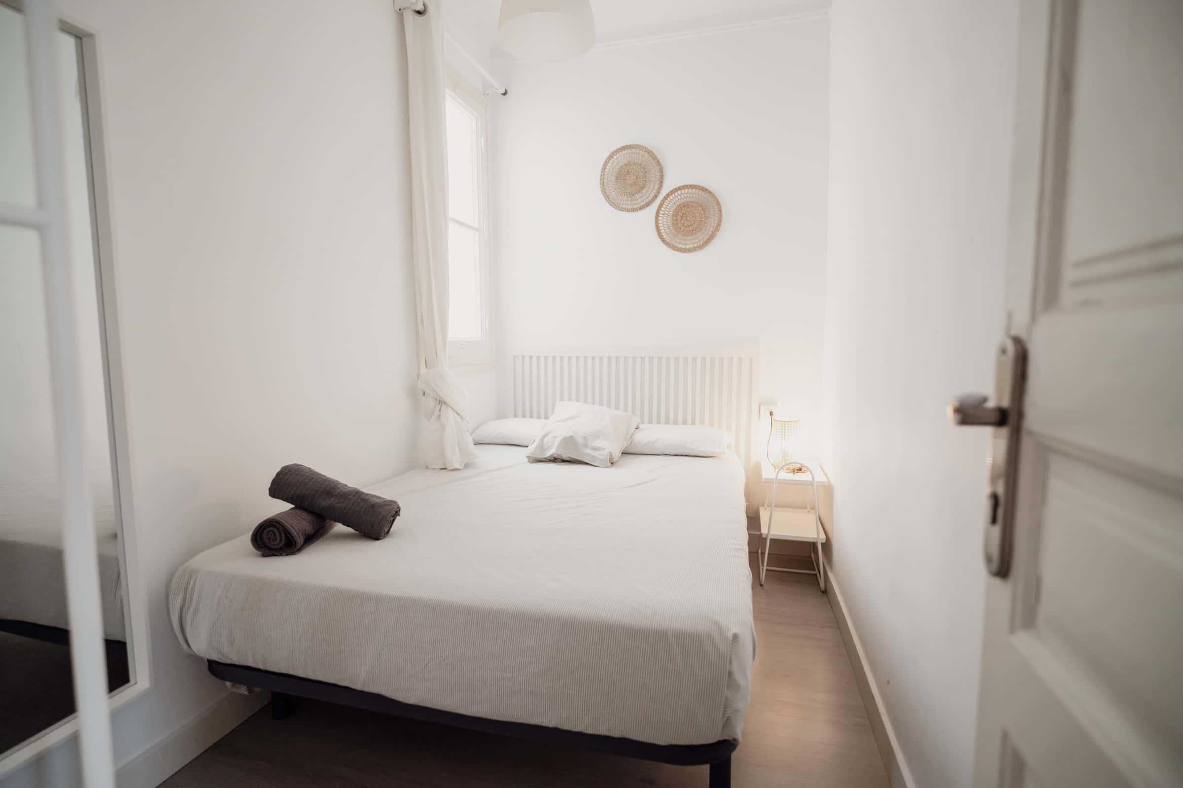 Habitación doble con aire acondicionado y ventana en una ubicación muy cómoda, a pasos de La Rambla y el puerto de Barcelona. Estás en Poble Sec, un barrio lleno de oferta gastronómica y con excelente conexión en metro para moverte por toda la ciudad. Ofrece una cama doble, ropa de cama, toallas, wifi, cerradura con llave, ventilador, aire acondicionado y ventana luminosa. El piso cuenta con cocina compartida totalmente equipada, microondas, heladera, utensilios, vajilla y baño compartido en buen estado. La combinación de AC + buena ubicación hace que esta habitación sea ideal para estancias cómodas y prácticas. Edificio con ascensor, acceso por zonas comunes. Poble Sec es un barrio vibrante, lleno de bares, teatros, murales, pequeñas plazas y muy cerca de Montjuïc, el puerto y La Rambla. La Rambla, el puerto, Paral·lel y varios puntos del centro están a distancia caminable. Desde las líneas L2 y L3 podés llegar en pocos minutos a Sagrada Familia, Passeig de Gràcia, Plaza España, Plaza Catalunya y muchos otros sitios turísticos. También podés caminar por la costa hasta Barceloneta en unos diez minutos, lo cual es perfecto para disfrutar del mar. Montjuïc está a pasos, con museos, parques y miradores. Es una zona ideal para moverse sin depender demasiado del transporte.