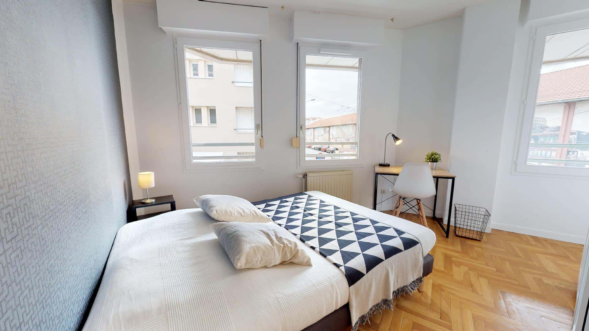📷VISITE VIRTUELLE DISPONIBLE SUR DEMANDE 📷 🏠LE LOGEMENT Grande colocation de 105 m² avec 5 chambres L’appartement se trouve au 1 Rue Bonnefond dans le très agréable quartier de Montchat.🛏️LA CHAMBRESuperficie : 10 m2Elle est équipée d’un lit double, d’une table de nuit avec lampe de chevet, d’un grand placard avec miroir, d’un bureau (lui aussi équipé d’une lampe).+La literie (couette et oreillers) est également fournie.🛋️ESPACES COMMUNSGrande cuisine équipéeCoin repas Coin ChillBuanderieLarges espaces de rangement.2 Salles de bain WC séparés🏙️CADRE DE VIE Au quotidien, profitez d’un quartier agréable, proche de toutes commodités (pharmacie, salle de sport, restaurants, commerces, supermarchés, lycée, écoles et universités, la poste).TRANSPORTS🚇Métro D 🚊Tram T3🚌Plusieurs lignes de bus🚴🏻♂️ Stations Vélo’v💡SERVICES ET ÉQUIPEMENTS INCLUSInternet (Fibre) GazChauffageEau couranteEau chaudeElectricitéEntretien de l’immeubleTaxe ordures ménagères Machine à laver Les informations sur les risques auxquels ce bien est exposé sont disponibles sur le site Géorisques : www.georisques.gouv.frMontant estimé des dépenses annuelles d'énergie pour un usage standard : 1542 € par an.Prix moyens des énergies indexés sur l'année 2021,2022,2023 (abonnements compris)