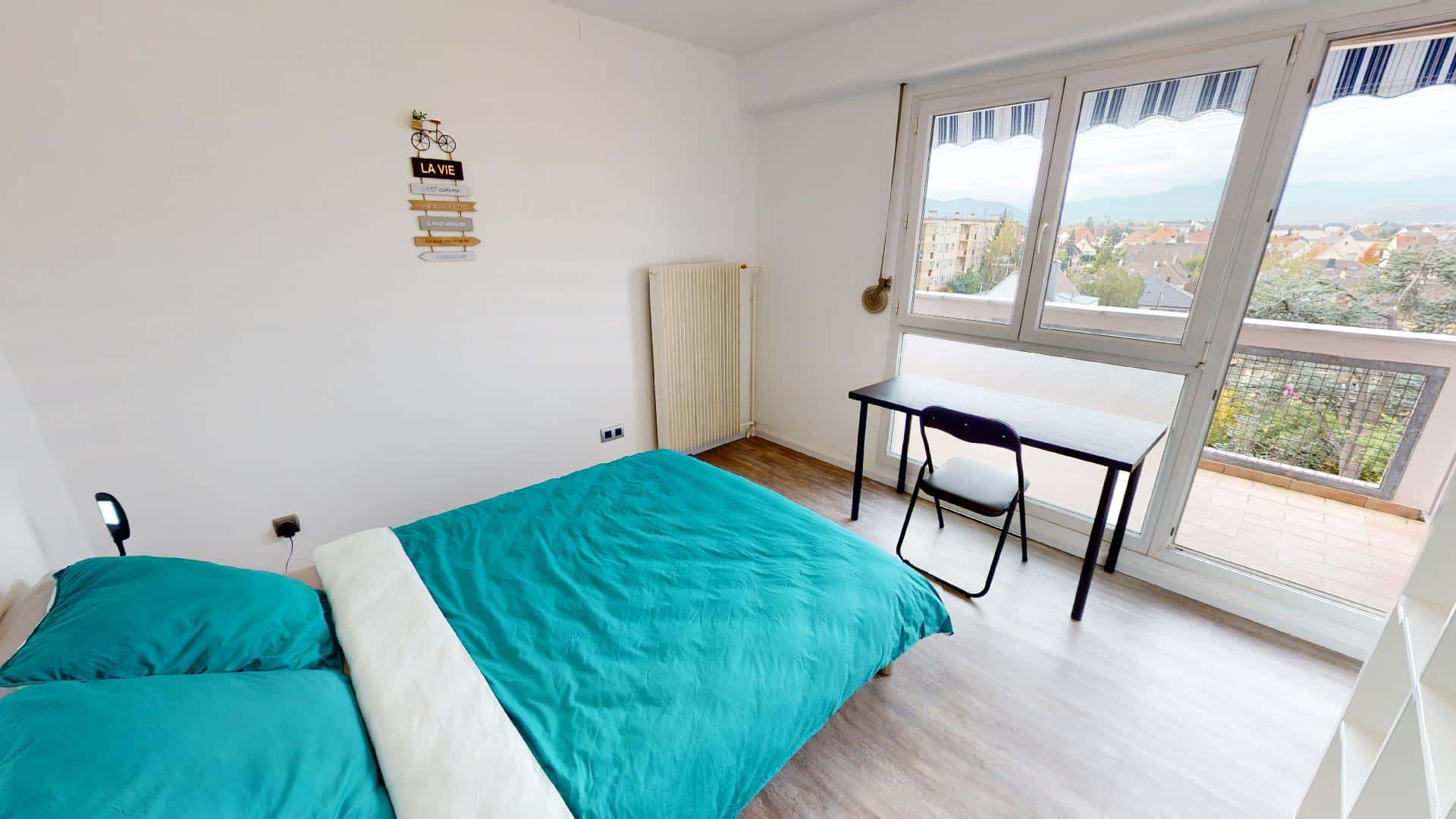📍30 Rue Du Raisin, Colmar🏠 LE LOGEMENT OQORO vous présente cette superbe colocation entièrement rénovée de 62m2 situé à Colmar au 30 rue du raisin. Elle possède 3 chambres.🛏️ LA CHAMBRECette chambre donne accès au balcon partagé avec la chambre 3.Elle est lumineuse et dispose d'un lit double, bureau et étagère de rangement.🛋️ ESPACES COMMUNSL'appartement se situe au 5ème étage avec ascenseur. Il s'ouvre sur un couloir desservant les chambres, la salle de bain et la pièce de vie.Le couloir est meublé avec de nombreux rangements. La pièce de vie comporte un bar mange debout, ainsi qu'une cuisine équipée avec plaque de cuisson, hotte, four, micro-ondes, lave-vaisselle et frigo.Enfin, une salle de bain avec meuble vasque, douche, machine à laver ainsi qu'un WC séparé viennent compléter ce logement.Les plus : La fibre est incluse dans les charges, 5ème étage avec ascenseur, de nombreuses places gratuites autour du logement et un local à vélo.Cet appartement est idéal pour des étudiants et/ ou jeunes actifs !🏙️ CADRE DE VIEL'appartement est idéalement situé à 15 minutes à pied seulement du vieux Colmar, avec ses boutiques, cinémas, bar et restaurants. Vous trouverez également dans les environs toutes les commodités : Intermarché à 10 min, école maternelle, stade et court de tennis à 3 min.TRANSPORTS 🚌 La ligne de bus 6 circule à l’arrêt Muscat au pied de l’appartement.🚅 Gare TER de Colmar Mésanges (12 min à pied)💡SERVICES ET ÉQUIPEMENTS INCLUSEntretien de la chaudièreChauffageEau chaudeTaxe Ordures MénagèresEntretien de l'immeubleEau couranteInternet Fibre----------Bail individuel à la chambre. Pas de caution solidaire. Chacun est libre de partir quand il veut sans se soucier des autres colocs, dès le moment où il respecte un mois de préavis. Eligible aux APL.Les informations sur les risques auxquels ce bien est exposé sont disponibles sur le site Géorisques : www.georisques.gouv.frMontant estimé des dépenses annuelles d'énergie pour un usage standard : 1121 € par an.Prix moyens des énergies indexés sur l'année 2021 (abonnements compris)