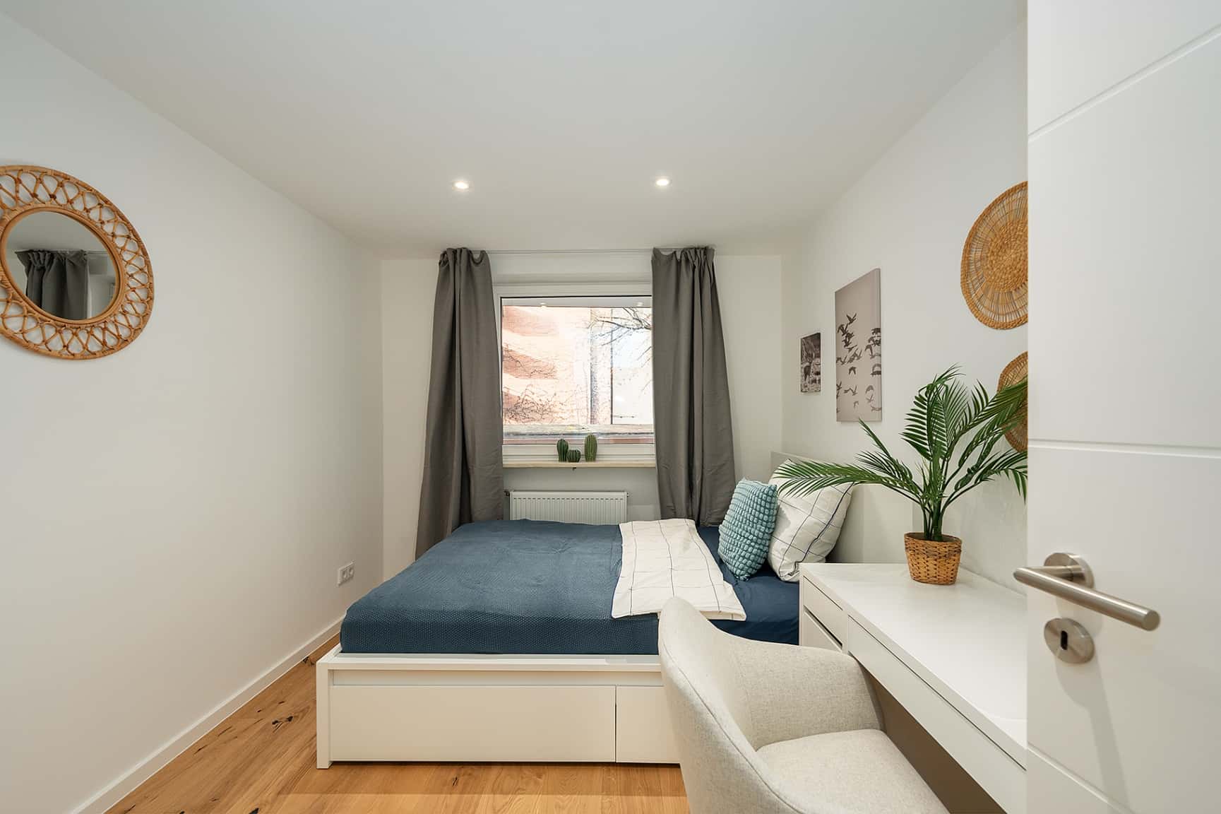 We offer you the opportunity to move into a stylish, high-quality furnished apartment designed by our interior team. The bright and attractive apartment is located in a well-maintained multi-family house in a central and convenient area. Public transport is just a 5-minute walk away, providing excellent access to all parts of Munich. Numerous shopping and retail options are within walking distance. Upon entering the apartment, you are welcomed by bright and friendly rooms furnished with great attention to comfort, quality, and design. Each room is equipped with a bed, wardrobe, desk, and chair, allowing you to move in with just a suitcase. The modern bathroom features sand-colored tiles, a walk-in shower, and a rain shower. The fully equipped kitchen includes a dishwasher and a washing machine with drying function. Balconies or loggias are furnished with a table and two chairs. Some of our apartments are currently undergoing renovation. Should this be the case, all apartments are guaranteed to be ready for occupancy by the agreed move-in date. After completion, they meet our high standards of quality and furnishing. As all our apartments follow the same design concept, you can expect an equally attractive and comfortable living environment. The images shown may be sample images and serve to illustrate the furnishing style and standard. A lockable cellar compartment is also included. Electricity and heating costs are included in the warm rent. Only internet and broadcasting fees are shared with your housemates.