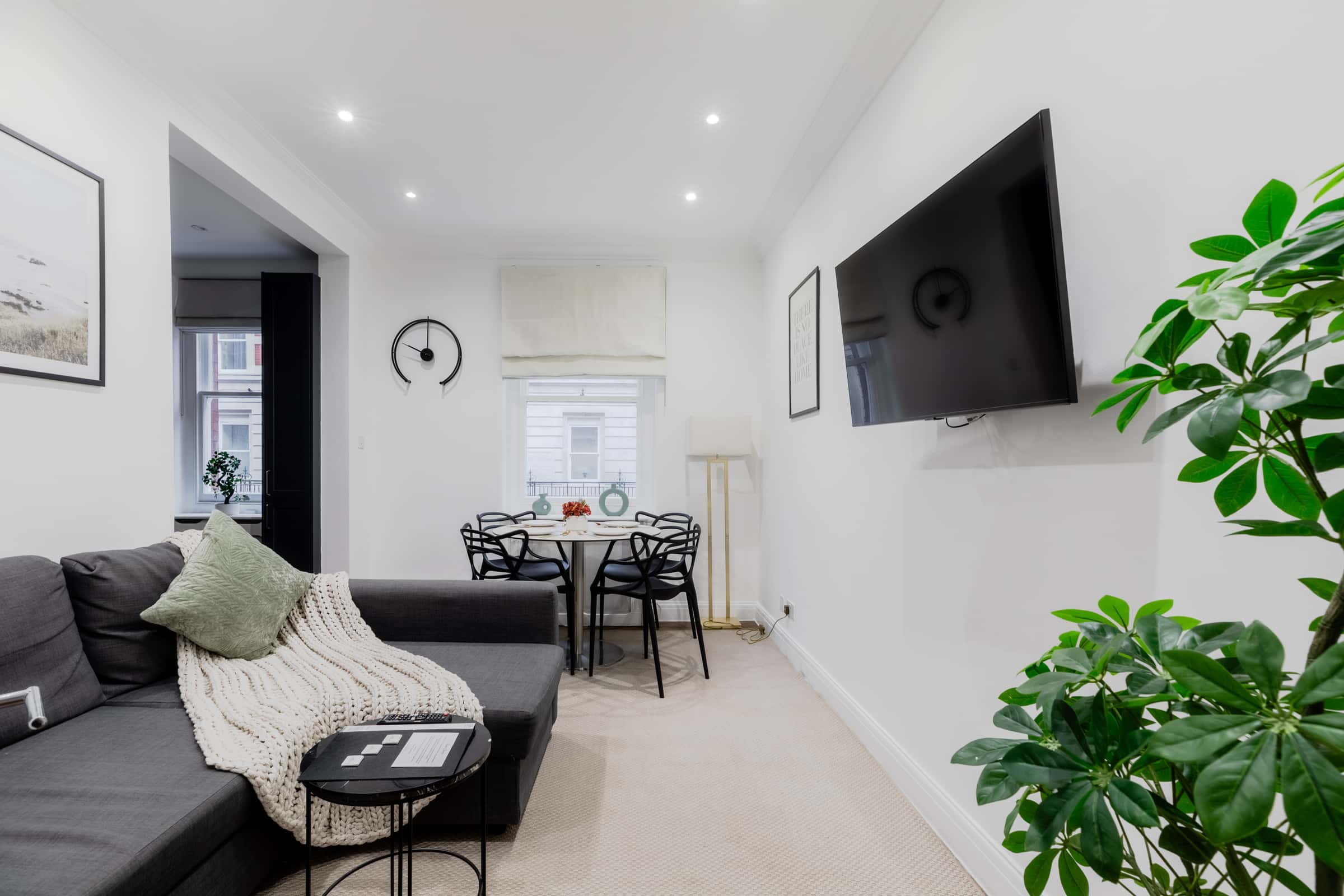 A spacious two bedroom flat located in central London. A modern and well-presented two bedroom flat on the Raised Ground Floor of a professionally managed building conveniently located just moments away from Oxford Circus, Regent Street and Tottenham Court Road. The flat comprises a large and airy reception room, open-plan fully fitted kitchen complete with breakfast bar, dishwasher & washer dryer, two double bedrooms, fitted bathroom and additional separate WC. Perfect for students and professionals The apartment has a total area of 43.1 square meters. There are 2 bedroom(s), 1 bathroom(s). . It also has 1 living room(s) No additional fee is requested for the condominium. A minimum stay of 1 month(s) is required. It is possible to book directly online.