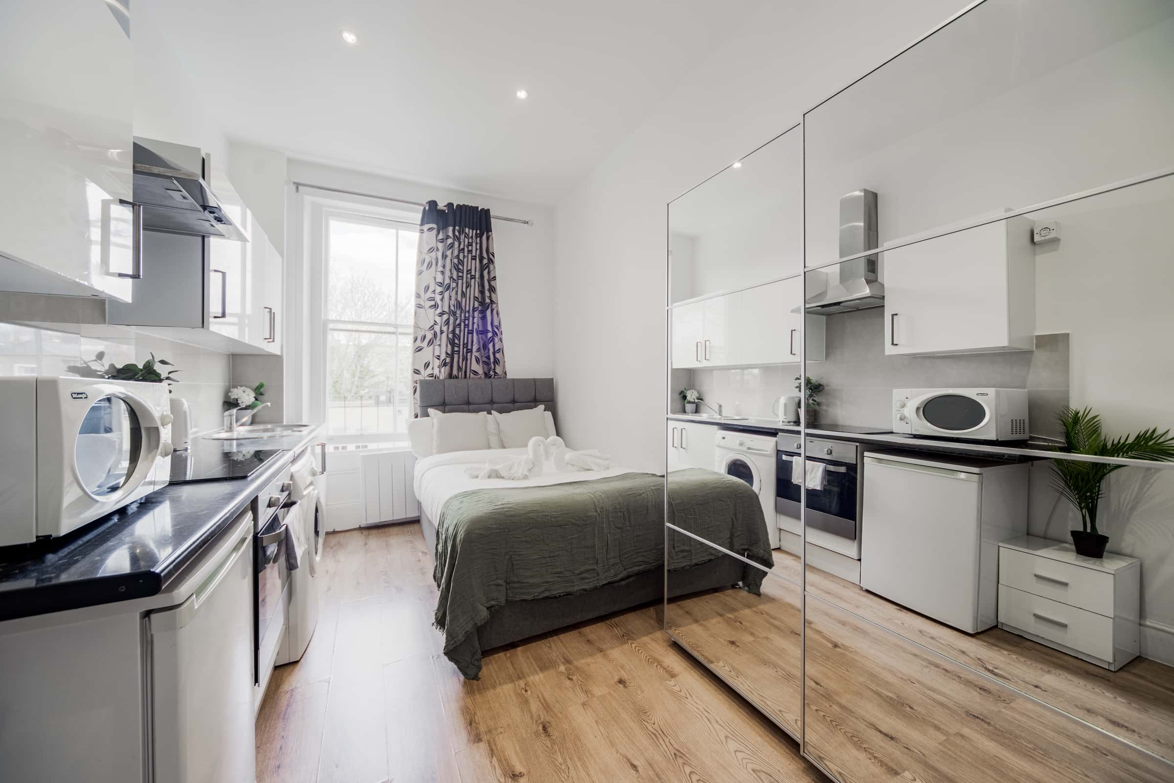 A stunning fully self-contained studio in central London complete with large kitchenette with a washer-dryer, stylish bathroom and ample storage. Wi-Fi and smart TV included Fantastic transport links within 5-10 minutes walking distance: Bayswater station (District line, Circle line) Queensway station (Central line) Royal Oak (Hammersmith & City line) The apartment has a total area of 14.6 square meters. There is 1 bathroom(s). . No additional fee is requested for the condominium. A minimum stay of 1 month(s) is required. It is possible to book directly online.