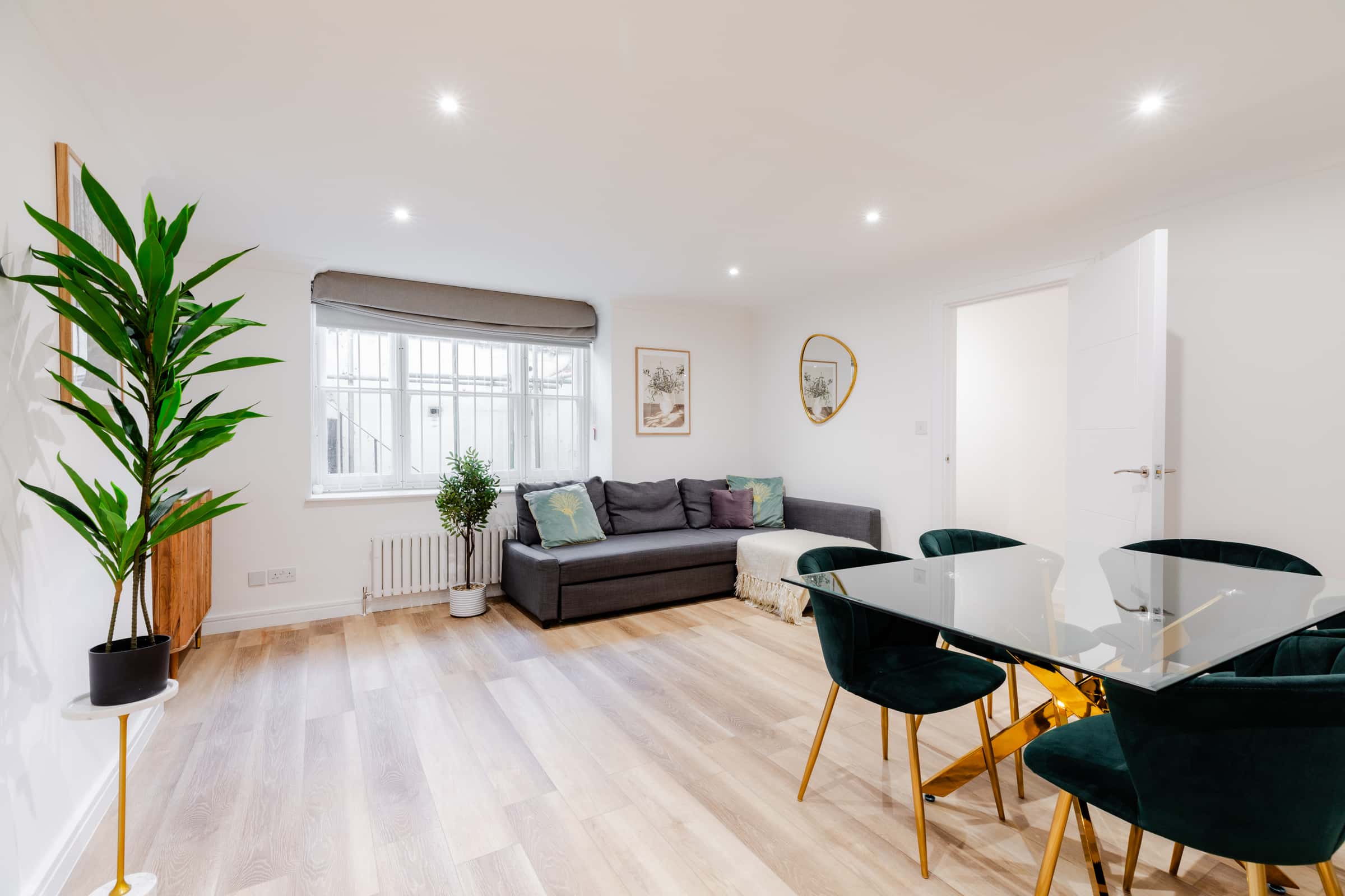 A very spacious lower ground two bedroom flat in a professionally managed Victorian building. The flat benefits from having brand new furniture throughout, wooden flooring, a fully fitted & spacious open-plan kitchen complete with an oven, gas cookers, a dishwasher and a large fridge and separate freezer. The reception room has a convertible sofa bed for added comfort The master bedroom has an en suite bathroom with its own shower, both bedrooms have a good amount of storage and plenty of space. The flat itself has an additional storage unit in the hallway. The location offers very convenient transport links & amenities being within a few minutes of the Italian Gardens in Hyde Park, Lancaster Gate station (Central line) and Paddington station (District, Circle, Hammersmith & City, Bakerloo, Elizabeth Line, Heathrow Express & GWR lines). The apartment has a total area of 84.35 square meters. There are 2 bedroom(s), 2 bathroom(s). . It also has 1 living room(s). No additional fee is requested for the condominium. A minimum stay of 1 month(s) is required. It is possible to book directly online.
