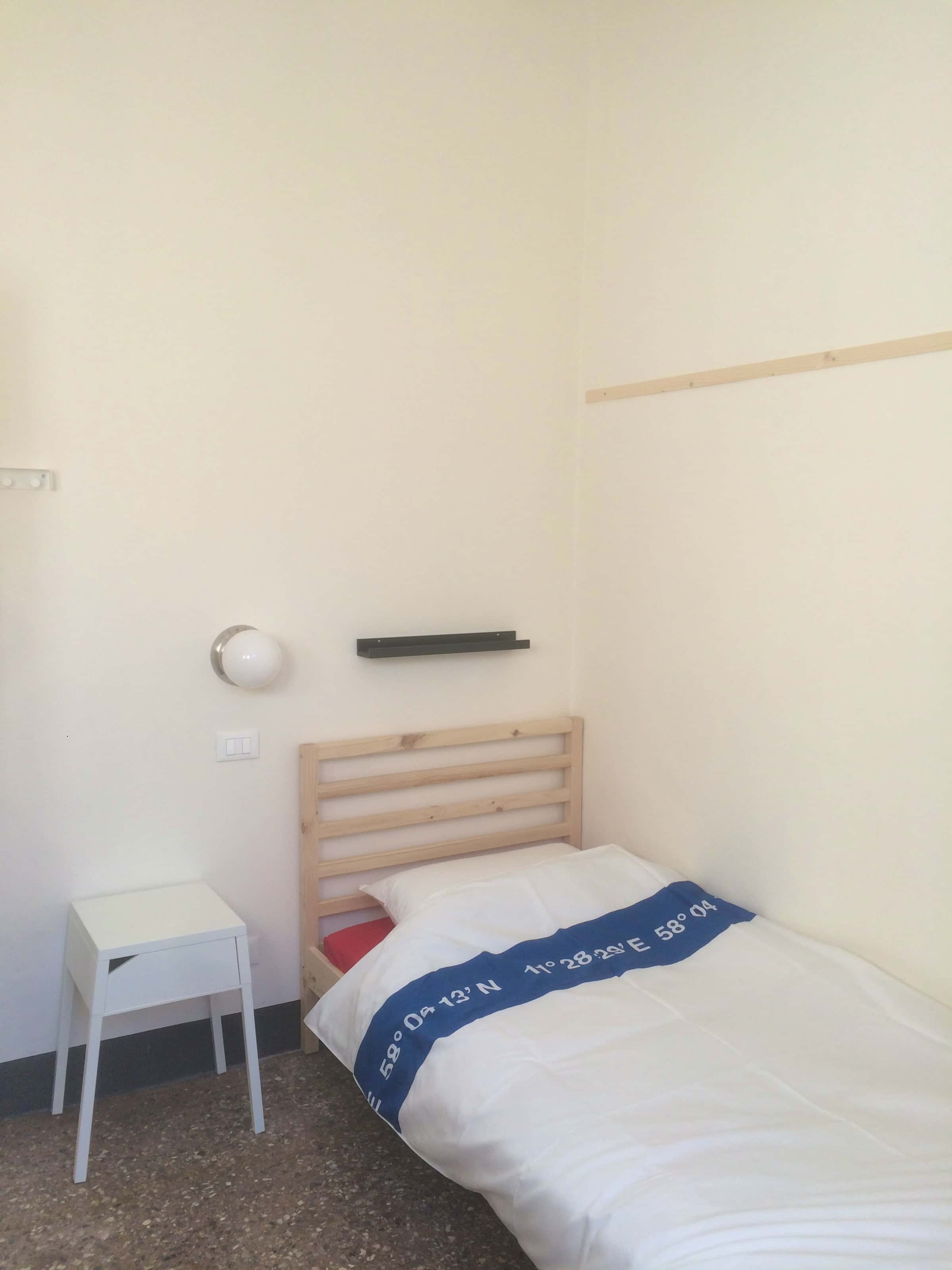 COSTI Affitto mensile 650€/mese TUTTO INCLUSO DEPOSITO CAUZIONALE: E' previsto un deposito cauzionale pari a € 1.300,00, il quale verrà restituito a fine locazione e non imputabile in conto pigioni. (non può essere utilizzato per pagare gli ultimi mesi di affitto). Da versare secondo le seguenti modalità, a scelta dell'inquilino: -con bonifico bancario direttamente sul conto corrente del proprietario, 7 giorni prima del check in (il giorno del check in il deposito deve risultare sul conto corrente) Si precisa che senza deposito cauzionale non sarà possibile effettuare il check in. ALTRE SPESE Sono previste spese di Agenzia Immobiliare pari a € 793,00 Iva inclusa, da pagare entro 5 giorni dalla prenotazione. Includono gestione pratiche check in e check out, supporto richiesta Codice Fiscale presso gli Uffici della Agenzia delle Entrate, preparazione e registrazione del contratto, assistenza clienti dedicata... DESCRIZIONE STANZA La stanza è totalmente arredata come da foto e chiudibile a chiave: -letto singolo comprensivo di rete e materasso -scrivania comprensiva di lampada e sedia -armadio -comodino/piccola libreria Ampia finestra. DESCRIZIONE APPARTAMENTO L'appartamento è composto da: -6 bagni completi -11 stanze singole -2 ampi corridoi con disimpegno -1 ampia cucina, completamente arredata con utensili per cucinare Completano il tutto: -1 lavatrici -1 asciugatrici -lavastoviglie -3 frigo e 3 freezer -forno elettrico -microonde TOTALE INQUILINI: 11 PERSONE, Appartamento misto (ragazze e ragazzi) ZONA: Via San Vitale 36, in pieno centro storico di Bologna. Comodissimo per tutte le facoltà universitarie. L'appartamento è progettato in stile moderno con camere spaziose e una grande cucina. Il quartiere è centralissimo e sicuro. A pochissimi minuti a piedi da piazza maggiore, Via Ugo Bassi e Via Rizzoli, Zamboni e Indipendenza. Zona strategica comoda per università (tutte le sue sedi dislocate) e Stazione Centrale dei treni. Supermercato, farmacia, tabacchi, bar e ristoranti sotto casa. Appartamento ristrutturato totalmente di recente. La stanza ha tutto il necessario per vivere, lavorare e studiare . Dagli elettrodomestici alla biancheria, internet e altro ancora. Piano alto, molto luminoso. Infissi con doppio vetro che isolano rumori e calore/freddo. Si affitta a persona responsabile e pulita e che possa curarsi dell’appartamento. Si procederà ad un inventario con foto al check in e al check out e ogni eventuale danno verrà addebitato. REGOLE DELLA CASA Non è possibile organizzare feste. Non è possibile ospitare amici/parenti. No animali. No fumatori. Regolare contratto registrato.