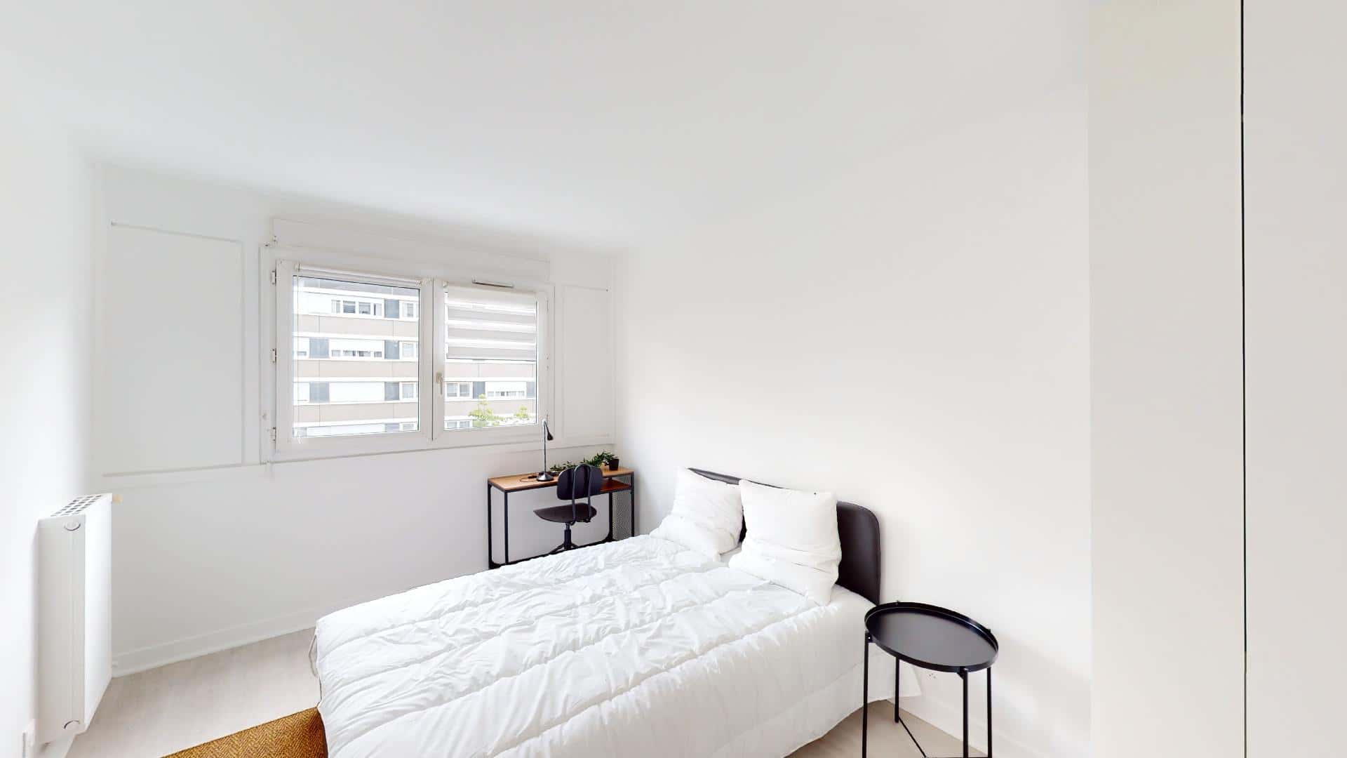 GRAND APPARTEMENT 5 PIÈCESDécouvrez cette colocation de 4 chambres de 81,69 m² localisée au 15 Boulevard Montaigut à Créteil (94000).🛌 LA CHAMBRELa chambre 4 se compose d'un lit double, d'un bureau accompagné d'une chaise, d'une table de chevet, et d'une armoire de rangement.🏠 LES ESPACES COMMUNSLe logement se compose de quatre chambres, d’une belle pièce de vie avec cuisine ouverte sur salon, de deux salles de bain dont une commune et la seconde privative attribuée à la chambre 1, d’un WC indépendant et de deux balcons dont un commun accessible par le salon, et le second à l’usage exclusif du locataire de la chambre 1. La cuisine est déjà équipée d’un four, de plaques de cuisson, d’une hotte, et de rangement, et s’ouvre un lumineux salon muni d’un canapé, d’une table basse et d’un tapis de sol et d’une table à manger accompagné de quatre chaises. Un charmant balcon avec pelouse synthétique vient compléter ces espaces. La salle de bain commune dispose d’un meuble vasque et d’une belle douche, ainsi que d’un sèche-serviette.Chaque chambre est équipée d’un lit double, d’un bureau et de rangement, et certaines présentent des particularités ou des espaces supplémentaires. 🌳 LES EXTÉRIEURSL'appartement dispose aussi d'un local vélos.🏙️ LE QUARTIERCe bel appartement a été entièrement rénové et se localise dans une résidence sécurisée et à proximité de la Faculté de Droit - UPEC, du centre des affaires Créteil Expansion, et de l’Université Paris-Est Créteil. Le métro 8 est disponible à 15 minutes à pied du logement à la station Créteil-Université. Pour vos besoins alimentaires, un Magasin Aldi se trouve à moins de 10 minutes à pied de ce bien. ⚡️ Inclus dans les charges :Internet FibreChauffageEau chaudeElectricitéTaxe Ordures MénagèresEntretien de l'immeubleEau courante——————————————————————Bail individuel à la chambre. Pas de caution solidaire. Chacun est libre de partir quand il veut sans se soucier des autres colocs, dès le moment où il respecte un mois de préavis. Eligible aux APL.Les informations sur les risques auxquels ce bien est exposé sont disponibles sur le site Géorisques : www.georisques.gouv.frMontant estimé des dépenses annuelles d'énergie pour un usage standard : 1252 € par an.Prix moyens des énergies indexés sur l'année 2021 (abonnements compris)