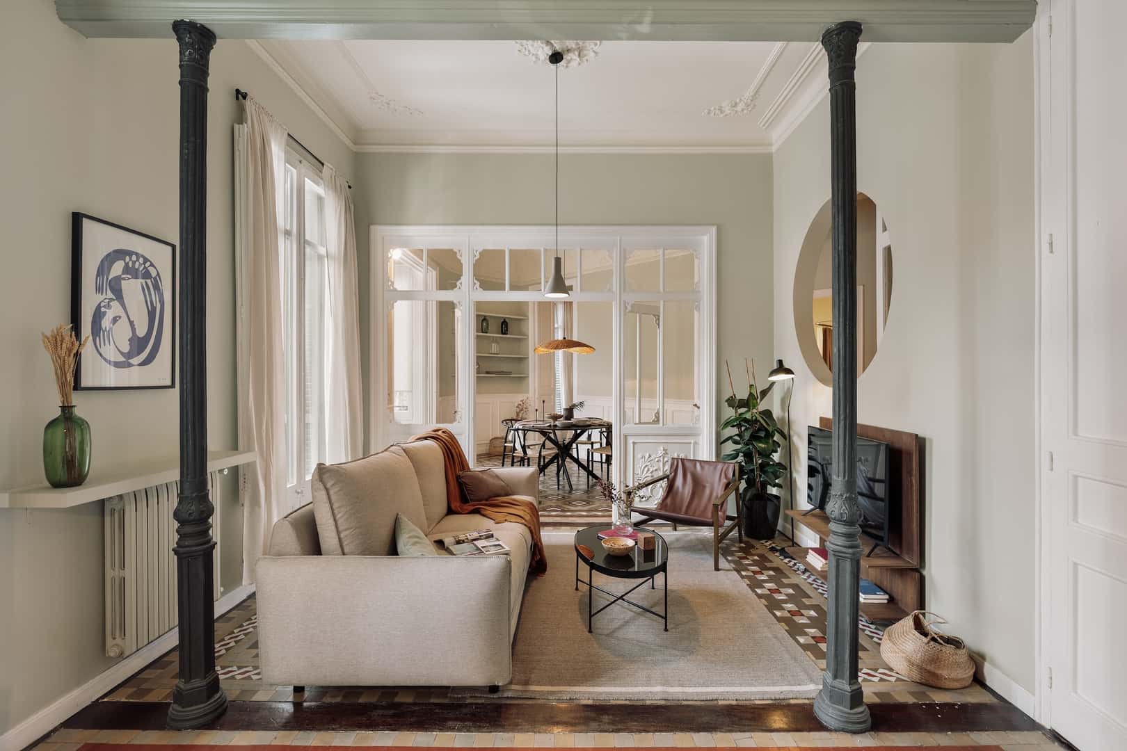 Our mission is to empower individuals to immerse themselves in new places by having a home wherever they go. We do this by providing artfully designed fully furnished and serviced apartments for stays of one month or more. We are currently present in some of the most important cities in Europe. This spacious two bedroom flat integrates modern design with traditional Catalan elements like the coloured floor tiles and intricate ceiling moldings. The floor to ceiling windows lead to balconies from the living areas and the guest bedroom, and flood the space with natural light. Upon entering, there is a sitting area and wood shelves, custom built by a local artisan for the space. Further along, the area comes fitted with a dining table for 6 people. The living room comes with an alcove fitted with a one-of-a-kind custom made day-bed, ideal for sitting around with friends, or laying in front of the TV. The master bedroom comes with a queen size bed, and is separate from the living area. It comes with an ensuite bathroom, with fresh towels. The kitchen is fully equipped with all the cooking appliances and utensils. The bathroom can be accessed via the hallway or directly from the guest bedroom. It comes with a bathtub and shower head. The guest bedroom is perfect for friends and family, with a large queen sized bed. For comfort, this apartment comes equipped with air conditioning in the Living Room and in one bedroom. *We welcome pets, fees are subject to apply. Guests will be informed of any additional charges in the final contract. We also cannot be liable for any rooms without air conditioning (all the rooms with air conditioner will be explicitly explained in our description). We will not accept any reservation cancellations or refund request related to these two issues. This spacious two bedroom flat integrates modern design with traditional Catalan elements like the coloured floor tiles and intricate ceiling moldings. The floor to ceiling windows lead to balconies from the living areas and the guest bedroom, and flood the space with natural light. Upon entering, there is a sitting area and wood shelves, custom built by a local artisan for the space. Further along, the area comes fitted with a dining table for 6 people. The living room comes with an alcove fitted with a one-of-a-kind custom made day-bed, ideal for sitting around with friends, or laying in front of the TV. The master bedroom comes with a queen size bed, and is separate from the living area. It comes with an ensuite bathroom, with fresh towels. The kitchen is fully equipped with all the cooking appliances and utensils. The bathroom can be accessed via the hallway or directly from the guest bedroom. It comes with a bathtub and shower head. The guest bedroom is perfect for friends and family, with a large queen sized bed. For comfort, this apartment comes equipped with air conditioning in the living room and in the main bedroom. *We welcome pets, fees are subject to apply. Guests will be informed of any additional charges in the final contract. *We cannot be held liable for any noises (construction, or street noise) done outside the apartment. We also cannot be liable for any rooms without air conditioning (all the rooms with air conditioner will be explicitly explained in our description). We will not accept any reservation cancellations or refund requests related to these two issues. *Our in-house design team expertly selects all apartment furniture and decor to ensure the highest level of quality and comfort. As part of consistent home upkeep, design improvements, and photo staging, there may be minor differences in furnishings seen in the photos and what you find in the apartment. Inquire with a sales agent for any questions or doubts. *This accommodation may only be used for stays longer than 31 nights for personal purposes such as holiday, recreational, or leisure. The information provided may be submitted to the relevant registry and/or administrative authority in accordance with Catalan regulations.