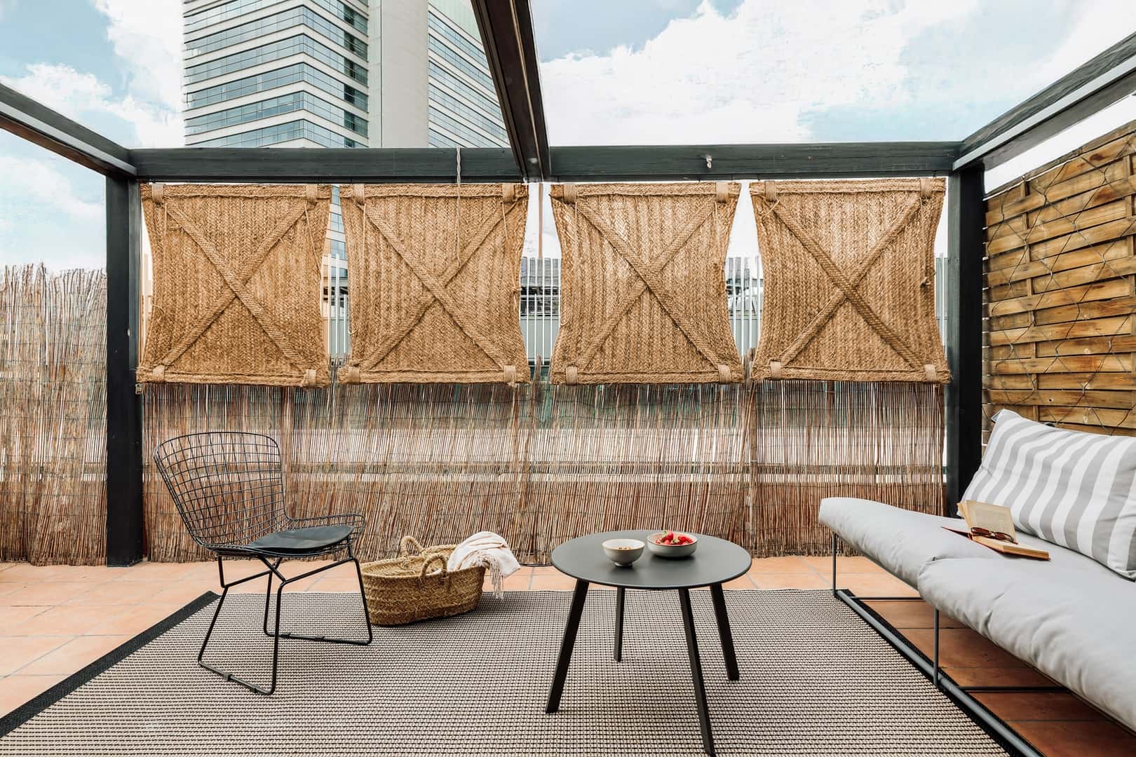 Quému is a spacious and bright 133 square meter apartment with 2 bedrooms and 2 bathrooms. The apartment also boasts a spacious 48 square meter outdoor terrace, accessible from the kitchen and indoor living area. The private terrace has a dining area with hanging fairy lights crossing above, and a lounge area.Walk into the apartment and find a living area characterized by a custom-made wood wall and a neon light above the couch. Adjacent, there is a dining room with a traditional fireplace and fitted with a modern table. The design plays with opposites: dark tones versus light wood decor, dried and subtle versus lively and vibrant plants.The kitchen is bright and spacious with wood finishings on the cabinets. The space is fully furnished with all cooking utensils and a unique big chalkboard to note recipes, shopping lists and reminders. The main bedroom comes with an en-suite bathroom with full bathtub. A handmade piece hangs above the queen-size bed. There is a dedicated work space with a desk fitted for one. The second bedroom has a double bed and ample storage space hidden behind a curtain. The second bathroom has a shower. *For comfort, this apartment comes equipped with air conditioning in the living room. All bedrooms and bathrooms have fresh linens. *We welcome pets, fees are subject to apply. Guests will be informed of any additional charges in the final contract. *We cannot be held liable for any noises (construction, or street noise) done outside the apartment. We also cannot be liable for any rooms without air conditioning (all the rooms with air conditioner will be explicitly explained in our description). We will not accept any reservation cancellations or refund request related to these two issues. *Our in-house design team expertly selects all apartment furniture and decor to ensure the highest level of quality and comfort. As part of consistent home upkeep, design improvements, and photo staging, there may be minor differences in furnishings seen in the photos and what you find in the apartment. Inquire with a sales agent for any questions or doubts. *This accommodation may only be used for stays longer than 31 nights for personal purposes such as holiday, recreational, or leisure. The information provided may be submitted to the relevant registry and/or administrative authority in accordance with Catalan regulations. Eixample Esquerra is a chic and centrally located neighborhood in the Eixample district in Barcelona, renowned for its beautiful Modernist architecture and a well-balanced blend of residential and commercial spaces. The area offers a lively yet refined vibe, making it an appealing choice for those seeking to rent a flat in Eixample Esquerra. The neighborhood features iconic landmarks such as the historic Hospital Clínic, the University of Barcelona, and the serene Parc de Joan Miró. Dining highlights include the Michelin-starred Cinc Sentits and the beloved Bar Ramón, both offering unique culinary delights. Public transportation is easily accessible via the Urgell and Universitat metro stations. Residents can enjoy a coffee at Nomad Coffee and find a productive environment at Aticco Workspaces.