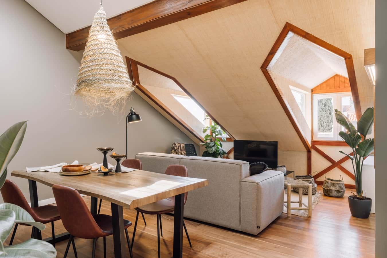Buja is a unique gem in Lisbon’s trendy Lapa district. This 88-square-meter home offers paradise from the inside out. Guests are encouraged to explore the Portuguese sweet shops scattered around the neighborhood or soak in a sunset at any of the miradouros in the area. Back to Buja, a Congolese-inspired decor is found throughout the entirety of this two-bedroom, one-bath escape. Buja’s entrance starts with the option to turn left for the open-concept living and dining area or continue straight for the kitchen. Playing with the slanted ceilings and architectonic features of the space, the kitchen is all things modern. The room is complete with modern appliances and all the necessary cooking utensils. Under a uniquely angular ceiling, the living and dining room offer natural light and an upscale design. The dining area is fit for four while the entertaining space in the living room invites guests to relax and revel in the jungle aesthetics. The room is complete with a dedicated workstation in the far corner. The hallway past the dining room splits off to the right to reveal a detached bathroom and Buja’s first bedroom. The shower-tub combination and basin sink feel divinely modern under the radiance from the skylight. The bedroom makes full use of the space with the double bedroom featured in the center and two built-in closets between the octagonal window nook. The door at the end of the hall leads to Buja’s second bedroom. A lush green and mystic wood-carving piece combine to make an accent wall behind the double bed. The left wall is lined with built-in storage. All bedding and linens provided. *We welcome pets, fees are subject to apply. Guests will be informed of any additional charges in the final contract. *We cannot be held liable for any noises (construction, or street noise) done outside the apartment. We also cannot be liable for any rooms without air conditioning (all the rooms with air conditioner will be explicitly explained in our description). We will not accept any reservation cancellations or refund request related to these two issues. *Our in-house design team expertly selects all apartment furniture and decor to ensure the highest level of quality and comfort. As part of consistent home upkeep, design improvements, and photo staging, there may be minor differences in furnishings seen in the photos and what you find in the apartment. Inquire with a sales agent for any questions or doubts.