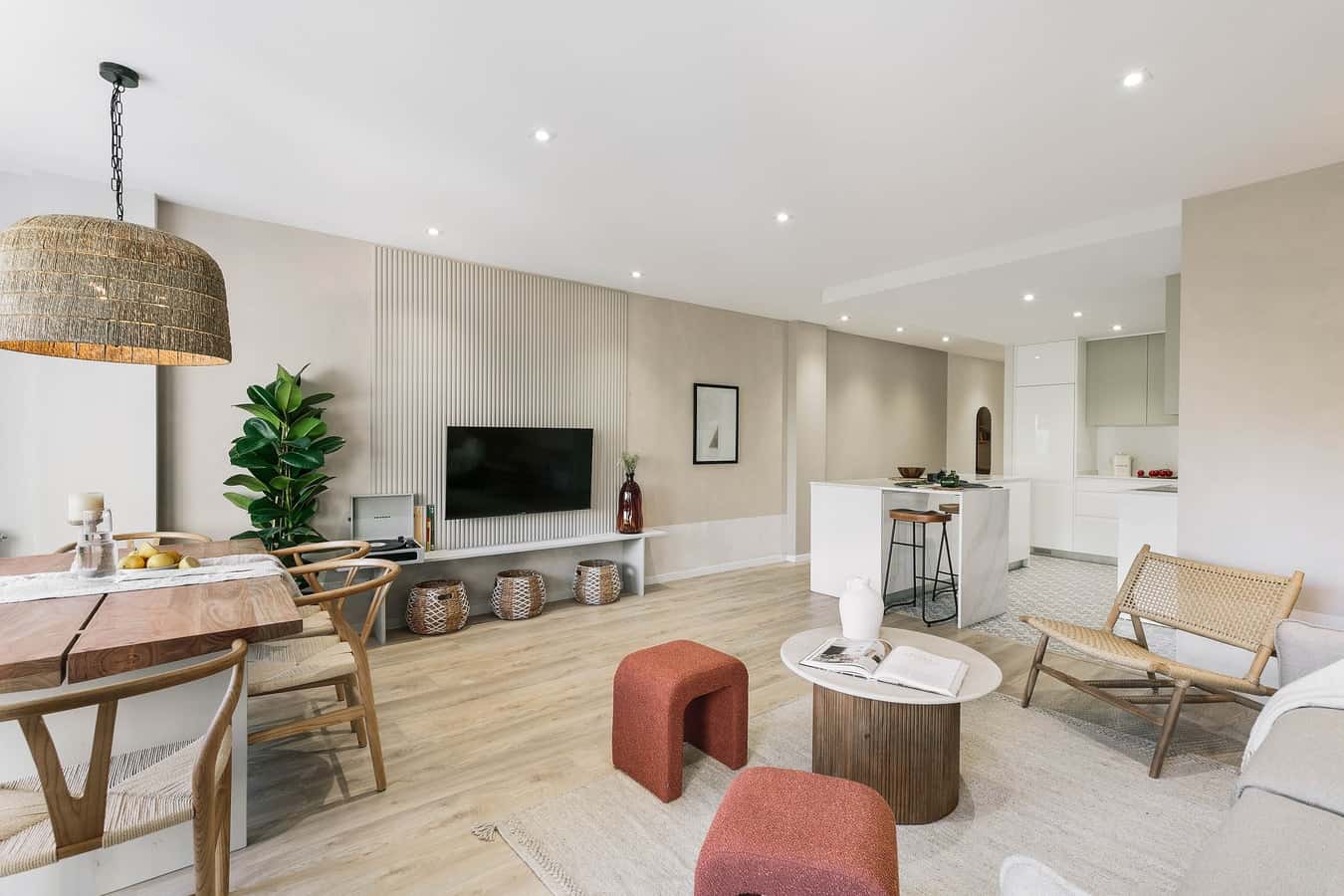 Welcome to Arienzo, a stylish 93-square-meter apartment located in the vibrant Sant Gervasi - Galvany neighborhood. Arienzo seamlessly blends comfort, convenience, and a captivating beach design theme, offering an exceptional stay in Barcelona. This apartment features two beautiful bedrooms, each furnished with a comfortable queen-size bed and balcony access. One of the bedrooms boasts an ensuite bathroom, providing added privacy and convenience. The second detached bathroom ensures everyone has a place to get ready for the day. Additionally, a small office space with a dedicated workstation is available, perfect for all remote working needs. The open-plan living room and kitchen area include relaxing beach themed design through the use of colors and textures. The living room is equipped with an entertainment system, creating a cozy space for relaxation. A dining table is also provided, ideal for enjoying meals or planning your Barcelona adventures. From the living room, you can step out onto a charming balcony complete with an outdoor sitting area. The fully furnished kitchen awaits, offering modern appliances and ample space to prepare delicious meals. For your comfort, air conditioning is available in the living room, ensuring a pleasant indoor climate even on the warmest Barcelona days. A doorman adds an extra layer of security and convenience to your stay. Fully furnished, this apartment comes with everything you need, including bedding and linens. For freshness, this apartment comes equipped with air conditioning in the living room. *We welcome pets, fees are subject to apply. Guests will be informed of any additional charges in the final contract. *We cannot be held liable for any noises (construction, or street noise) done outside the apartment. We also cannot be liable for any rooms without air conditioning (all the rooms with air conditioner will be explicitly explained in our description). We will not accept any reservation cancellations or refund requests related to these two issues. *Our in-house design team expertly selects all apartment furniture and decor to ensure the highest level of quality and comfort. As part of consistent home upkeep, design improvements, and photo staging, there may be minor differences in furnishings seen in the photos and what you find in the apartment. Inquire with a sales agent for any questions or doubts. *This accommodation may only be used for stays longer than 31 nights for personal purposes such as holiday, recreational, or leisure. The information provided may be submitted to the relevant registry and/or administrative authority in accordance with Catalan regulations. Sant Gervasi is an idyllic, family-friendly neighborhood known for its tranquility and beautiful Turo Parc. Enjoy strolling the paseos and shopping the vast collection of luxurious shops and fine dining along Avenida Diagonal. Looking to stock your kitchen and taste some of Barcelona's most delicious, locally-sourced food? Look no further than the famous Mercat de Galvany where you'll find everything from tasty jamon Iberico and handmade pasta to fresh produce, fish and meat.