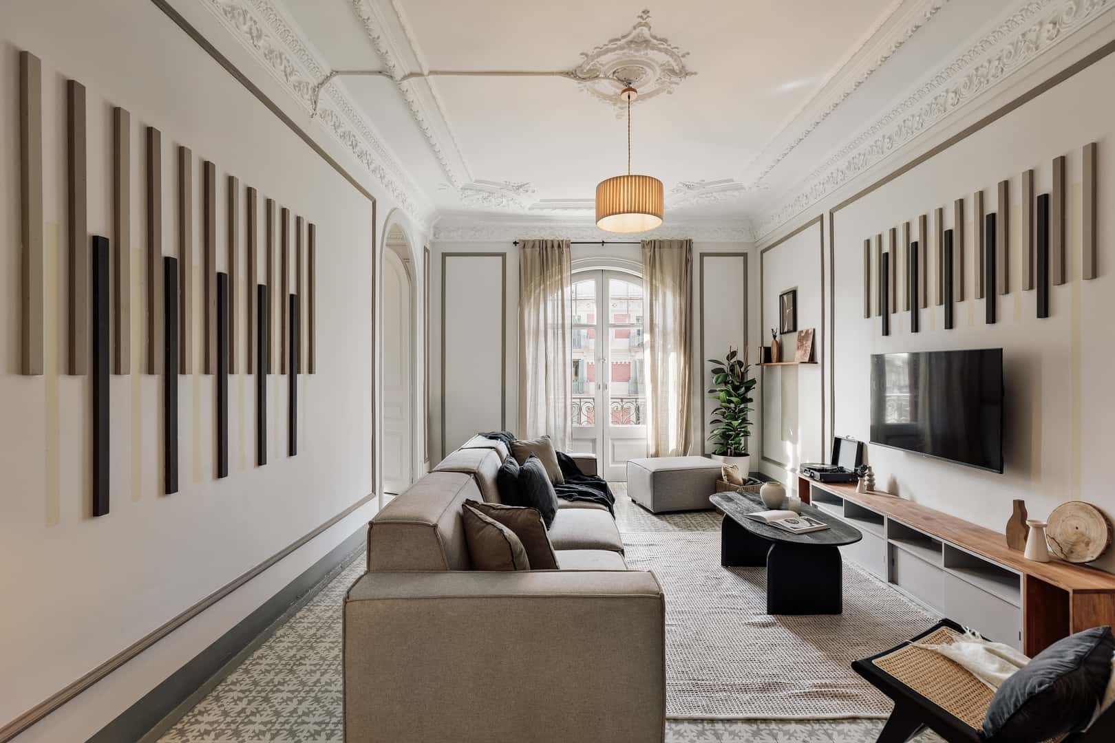 Spectacular apartment in Rambla Catalunya street, with 5 bedrooms and 2 bathrooms. The kitchen is equipped with appliances and kitchenware. The beds are equipped with soft bedding, ideal for a good night's rest. The apartment has 2 bathrooms equipped with a full shower and towels. In addition, the apartment is equipped with high-speed WiFi and SmartTV. The apartment has a washing machine, dishwasher and air conditioning for your maximum comfort. *For comfort, this apartment comes equipped with air conditioning in the living room & 2 bedrooms and fans in the other 3 bedrooms. *Please, note that this apartment does not allow pets. *Utilities are not included in the rental price and are charged separately. These additional costs will be clearly outlined in the final contract provided to our tenants. *We cannot be held liable for any noises (construction, or street noise) done outside the apartment. We also cannot be liable for any rooms without air conditioning (all the rooms with air conditioner will be explicitly explained in our description). We will not accept any reservation cancellations or refund requests related to these two issues. *Our in-house design team expertly selects all apartment furniture and decor to ensure the highest level of quality and comfort. As part of consistent home upkeep, design improvements, and photo staging, there may be minor differences in furnishings seen in the photos and what you find in the apartment. Inquire with a sales agent for any questions or doubts. *This accommodation may only be used for stays longer than 31 nights for personal purposes such as holiday, recreational, or leisure. The information provided may be submitted to the relevant registry and/or administrative authority in accordance with Catalan regulations. Eixample Dreta is a sophisticated neighborhood in Eixample district in Barcelona characterized by its modernist architecture and a thriving urban lifestyle. Primarily residential, it offers a balance of tranquility and city convenience, making it ideal for those seeking rent flats Eixample Dreta. Famous for its iconic Gaudi buildings, including Casa Batlló and La Pedrera, Eixample Dreta is a cultural hub. Enjoy a leisurely stroll along Passeig de Gràcia, a renowned shopping avenue, or indulge in delicious tapas at Bar Pinotxo or contemporary cuisine at Tickets. Well-connected with Diagonal and Passeig de Gràcia metro stations, the area offers easy access to the city. Stay fit at the upscale Holmes Place gym or enjoy a coffee at Camelia Art Café. For those seeking flexible workspaces, the neighborhood boasts several co-working spaces, including Atico.